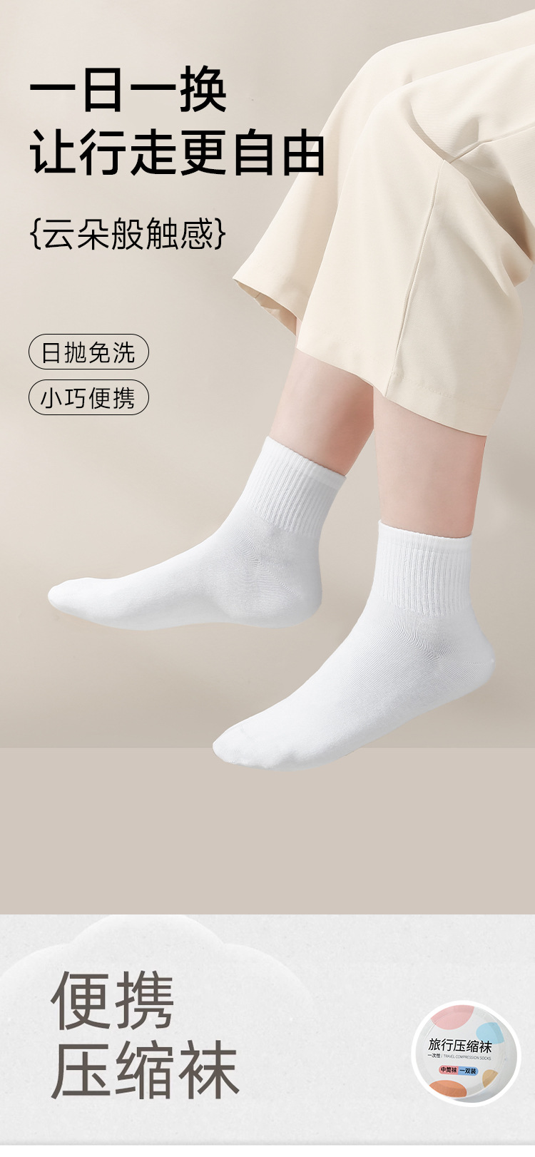 일회용 압축 양말 유니섹스 짧은 튜브 중간 튜브 매일 일회용 세척없는 양말 공장 직접 휴대용 여행스토어 가기