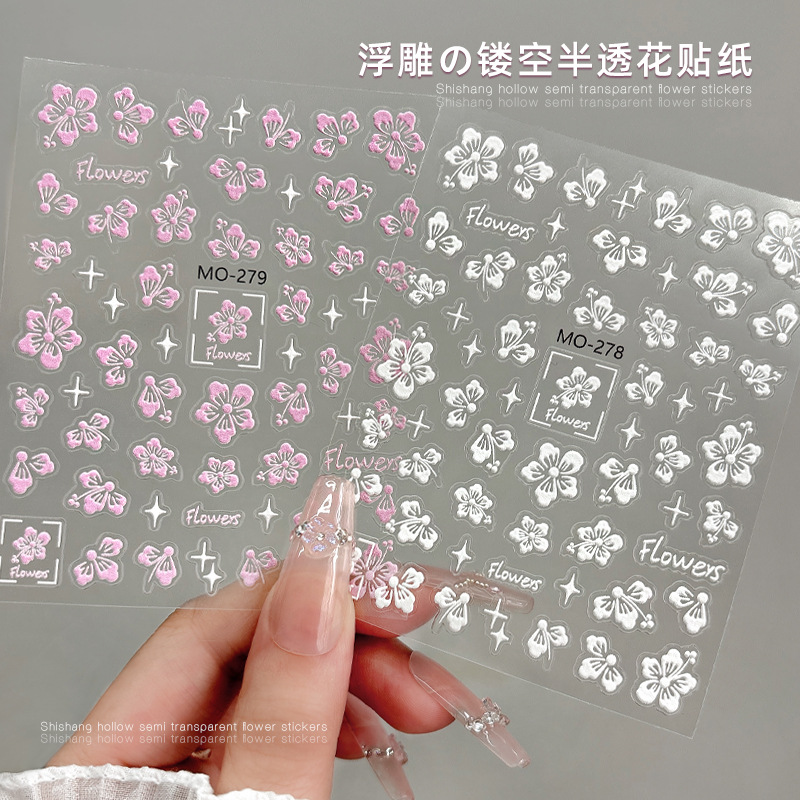 흰색 반투명 꽃 네일 아트 스티커 양각 5D 3 차원 간단한 올 매치 핑크 보라색 작은 꽃잎 착용 네일 스티커스토어 가기