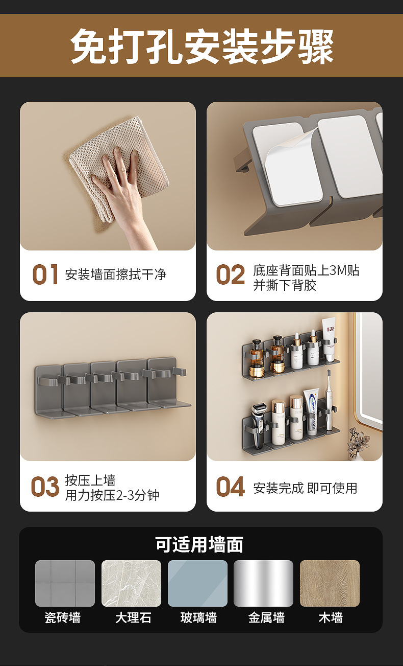 펀치없는 화장실 보관 랙 욕실 화장실 벽걸이 세탁기 벽 화장품 스킨 케어 스토리지 랙스토어 가기