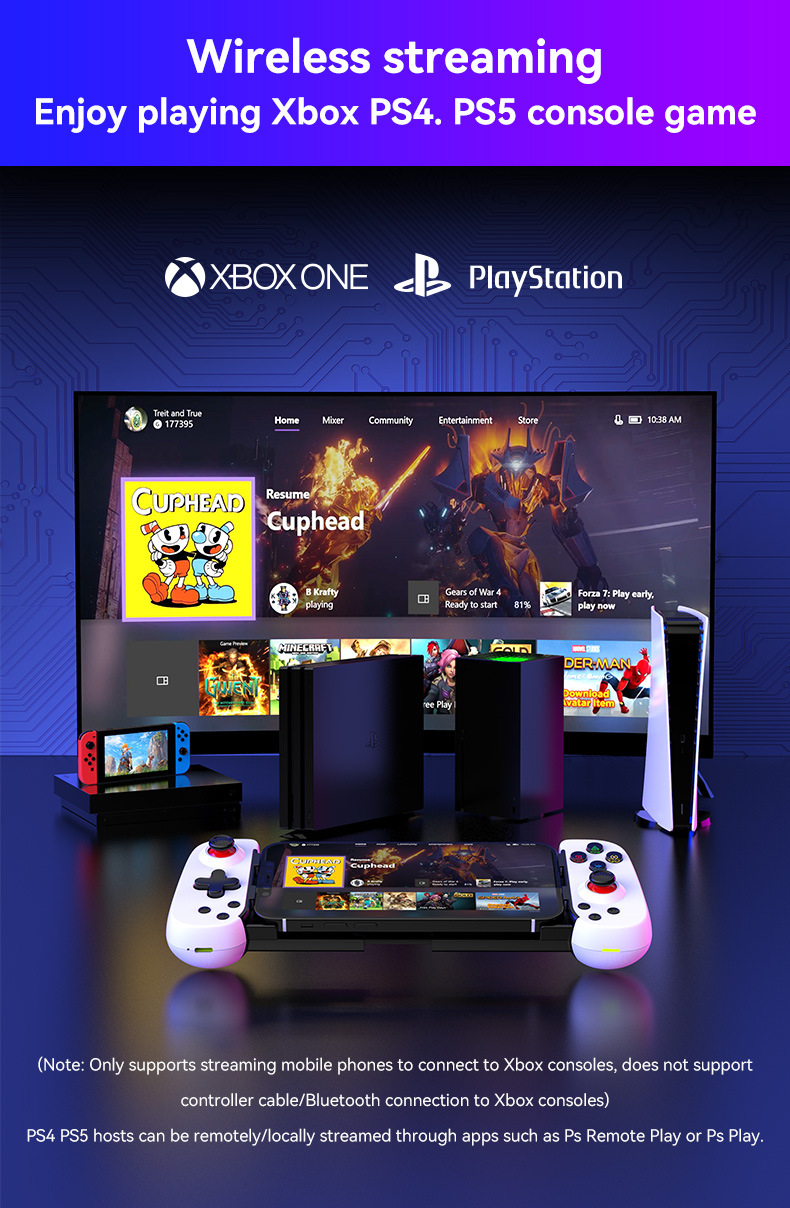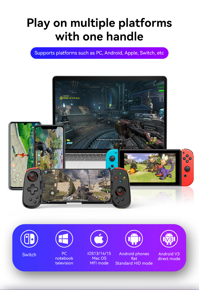 D6DP 스트레치 핸들 PS4/PS5/xbox/PC 스트리밍 무선 게임 패드 전화 안드로이드 IOS 시뮬레이터