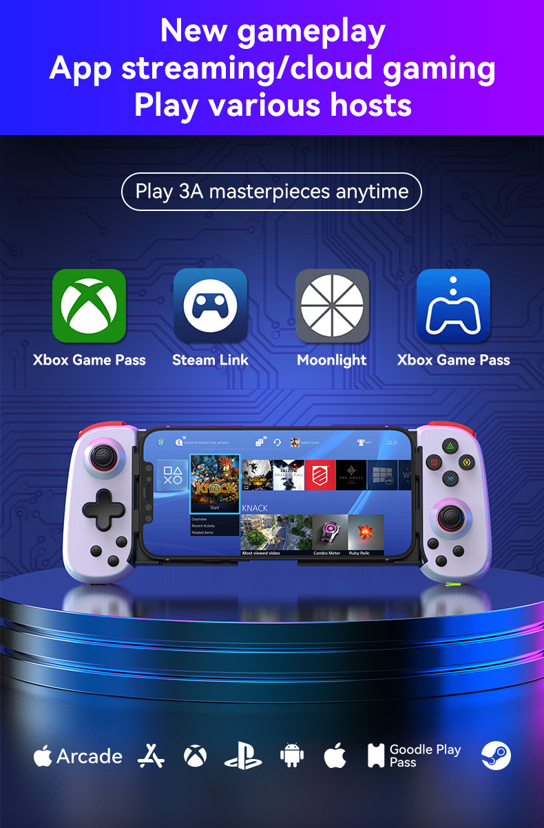 D6DP 스트레치 핸들 PS4/PS5/xbox/PC 스트리밍 무선 게임 패드 전화 안드로이드 IOS 시뮬레이터스토어 가기