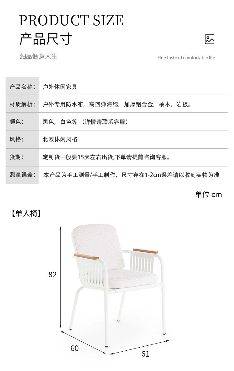 • 단일 의자 61*60*82cm (알루미늄 합금)