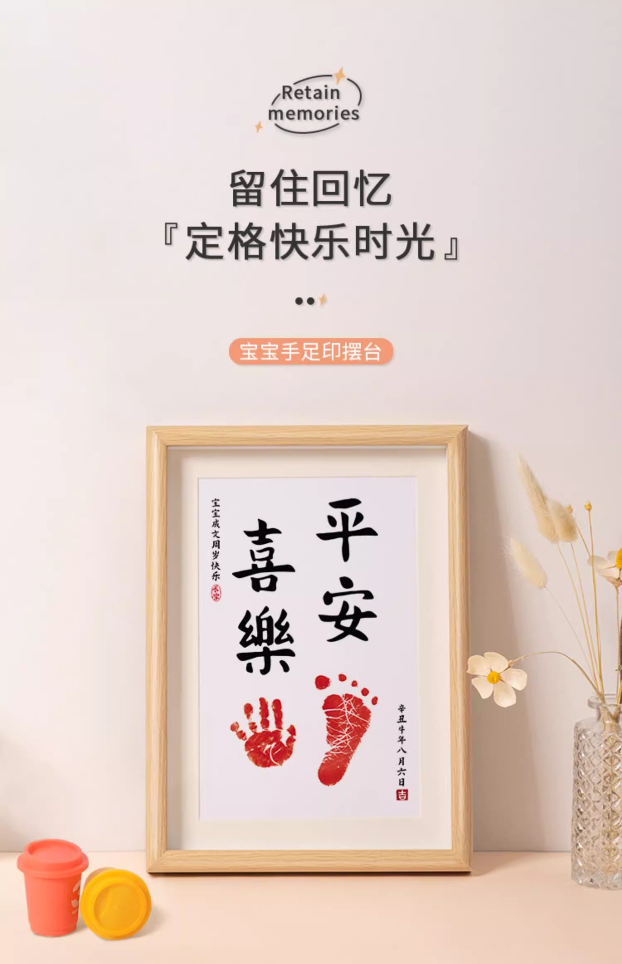1 년 된 발 인쇄 사진 프레임 100 일 보름달 아기 의식 기념품 아기 만족감 changle 서예 및 그림 발자국