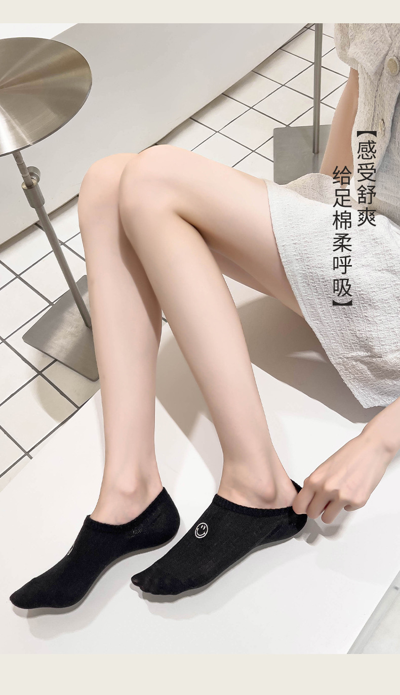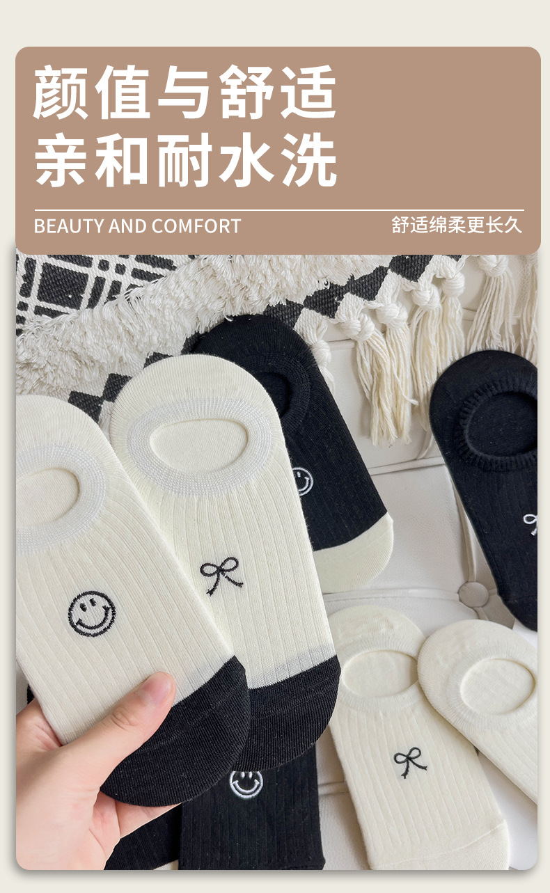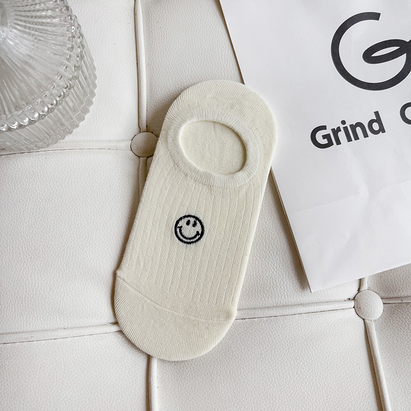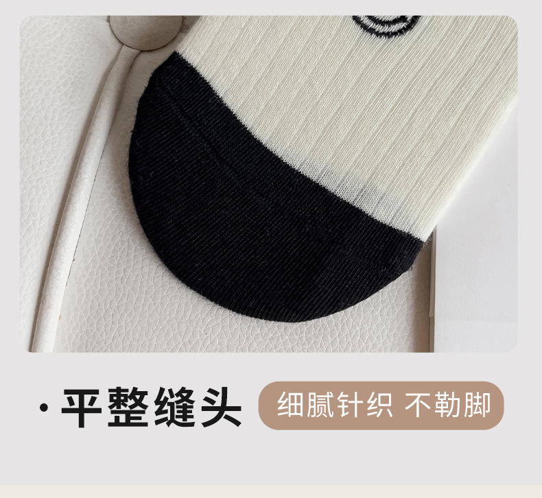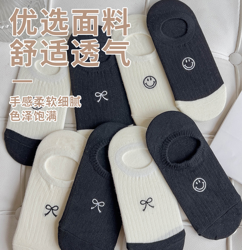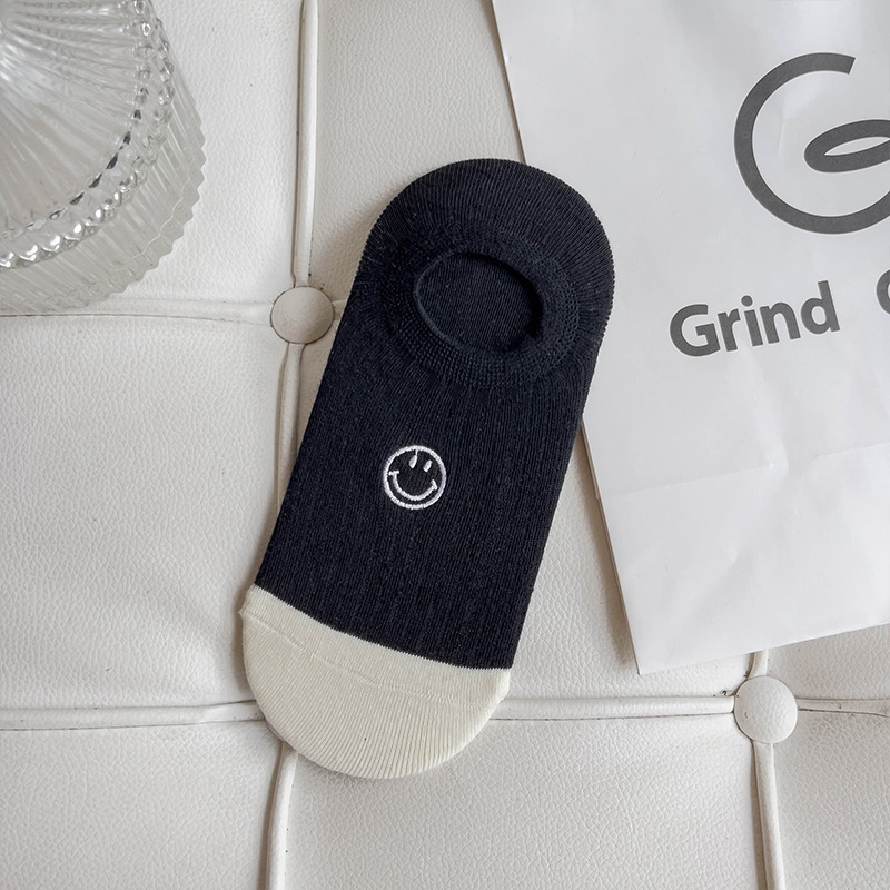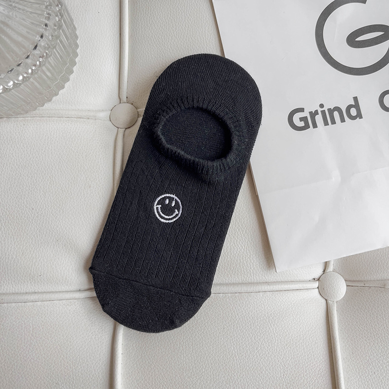 여성용 양말 봄과 여름 새로운 흑백 양말 자수 스마일리 활 통기성 땀 흡수성 실리콘 미끄럼 방지 양말스토어 가기