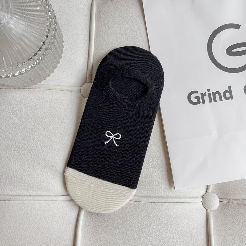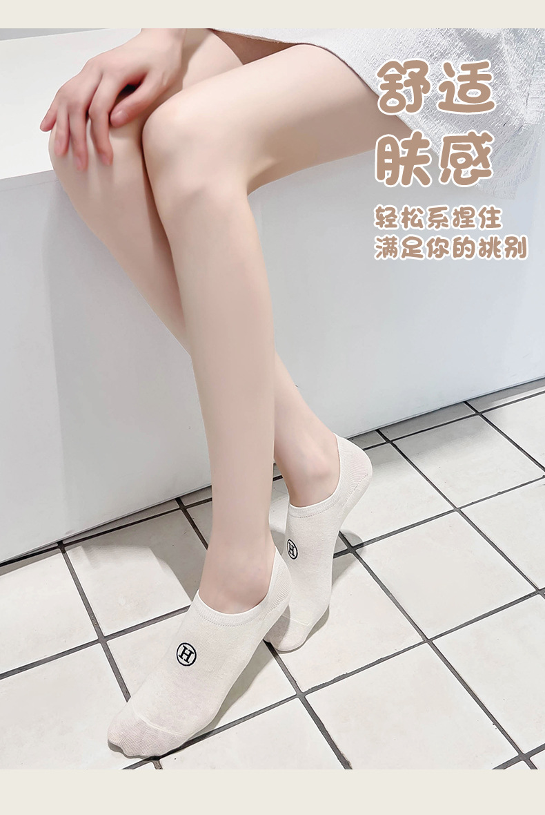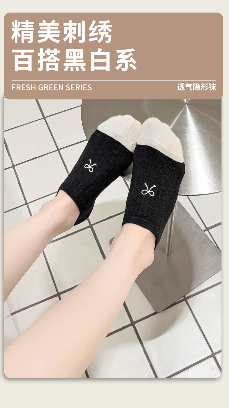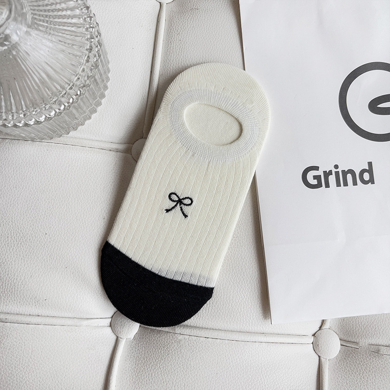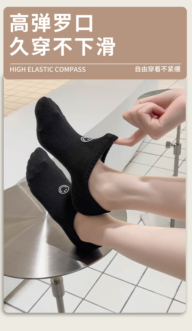 여성용 양말 봄과 여름 새로운 흑백 양말 자수 스마일리 활 통기성 땀 흡수성 실리콘 미끄럼 방지 양말스토어 가기
