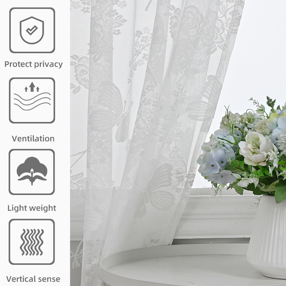 TEMU 재고 창 화면 생성 국경 나비 사랑 꽃 흰색 레이스 창 화면 SHEIN 반음영 완성 커튼스토어 가기