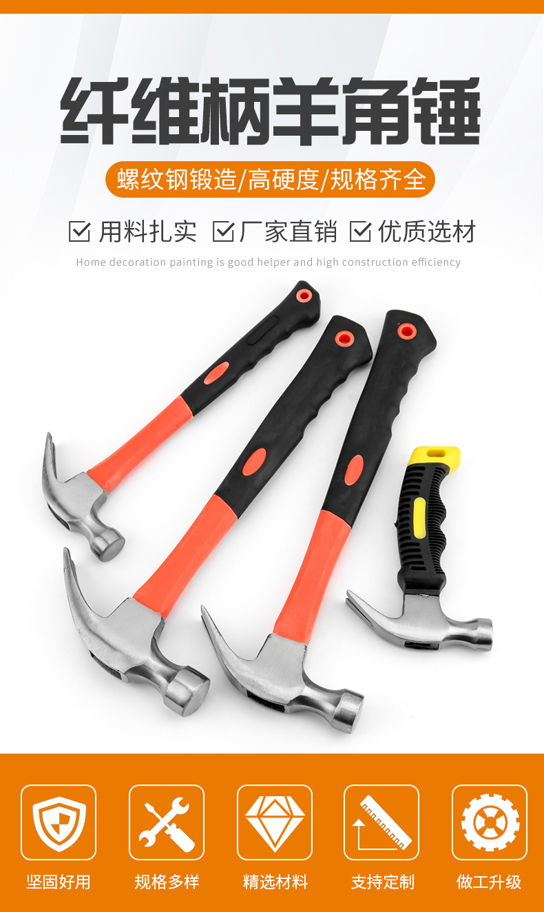 제조업체 도매 다기능 망치 섬유 손잡이 뿔망치 미니 플라스틱 코팅 뿔망치 목공용 망치 건축용 망치
