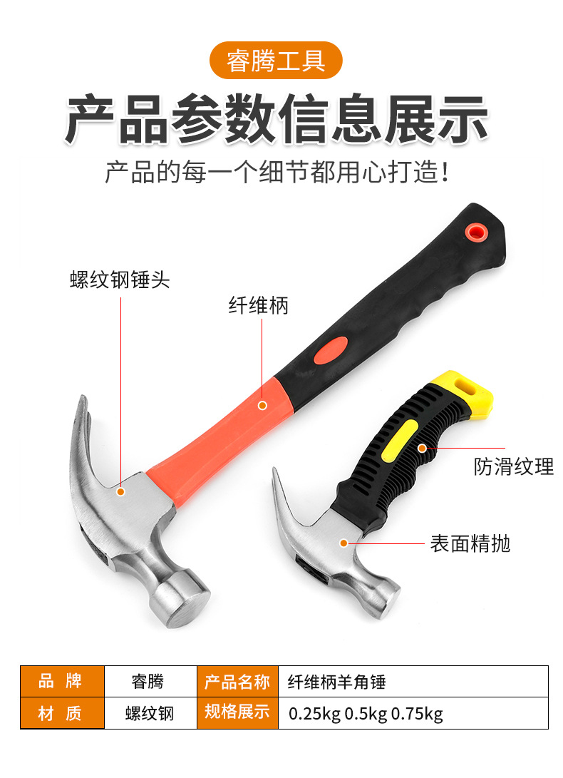 제조업체 도매 다기능 망치 섬유 손잡이 뿔망치 미니 플라스틱 코팅 뿔망치 목공용 망치 건축용 망치스토어 가기