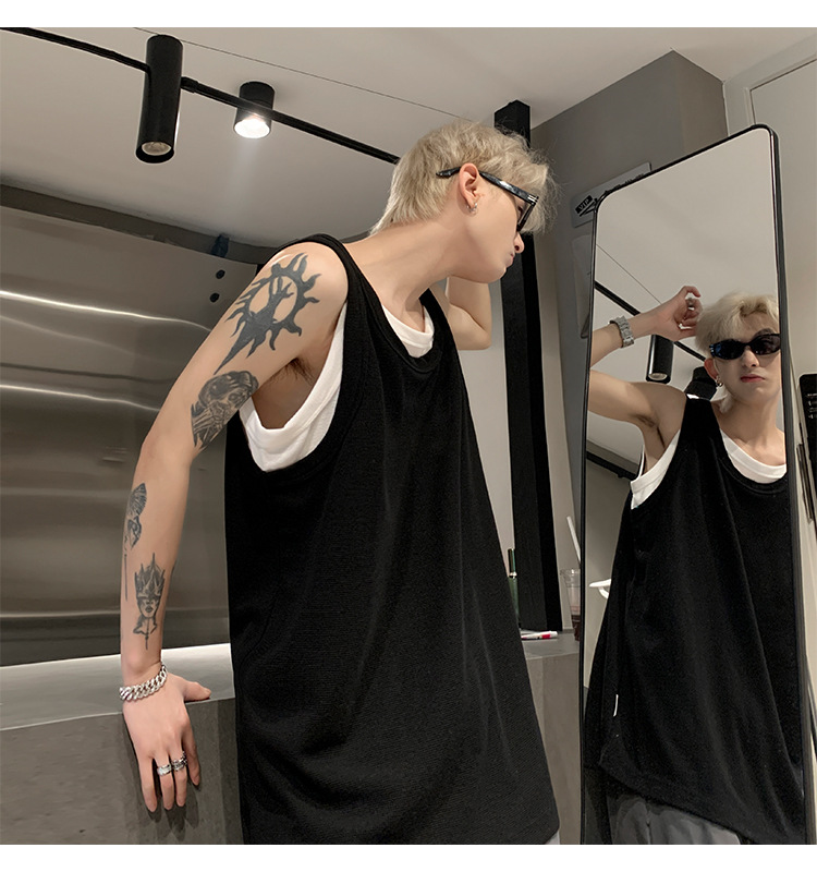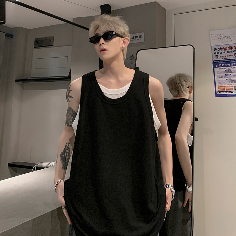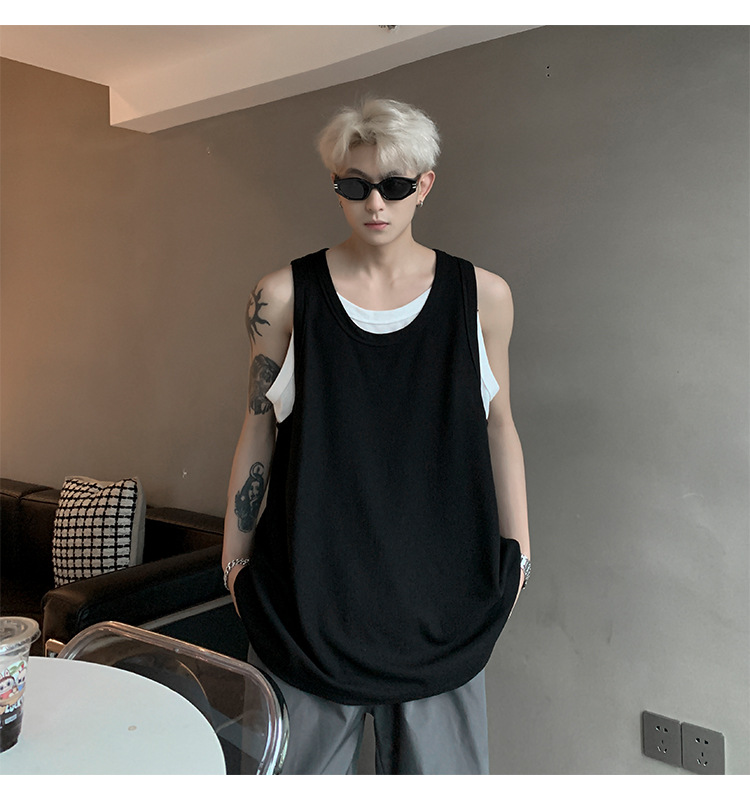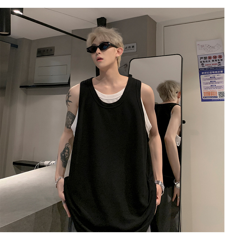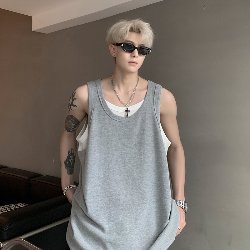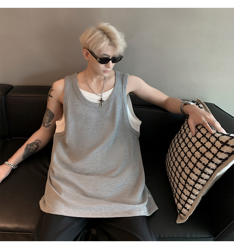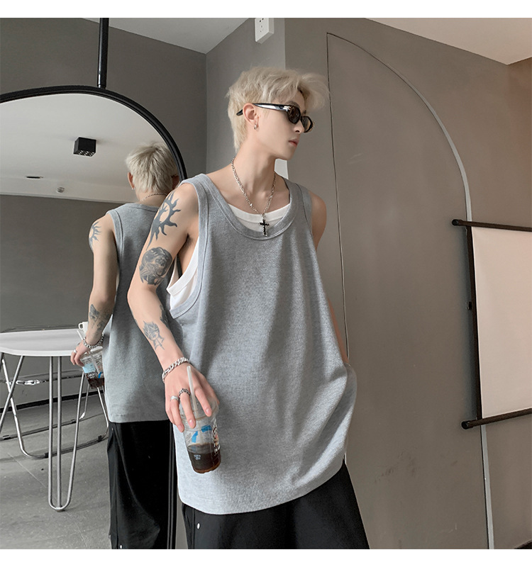 미국 가짜 투피스 조끼 남성 유행 여름 청소년을위한 무거운 민소매 티셔츠