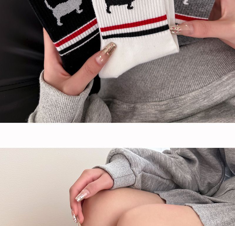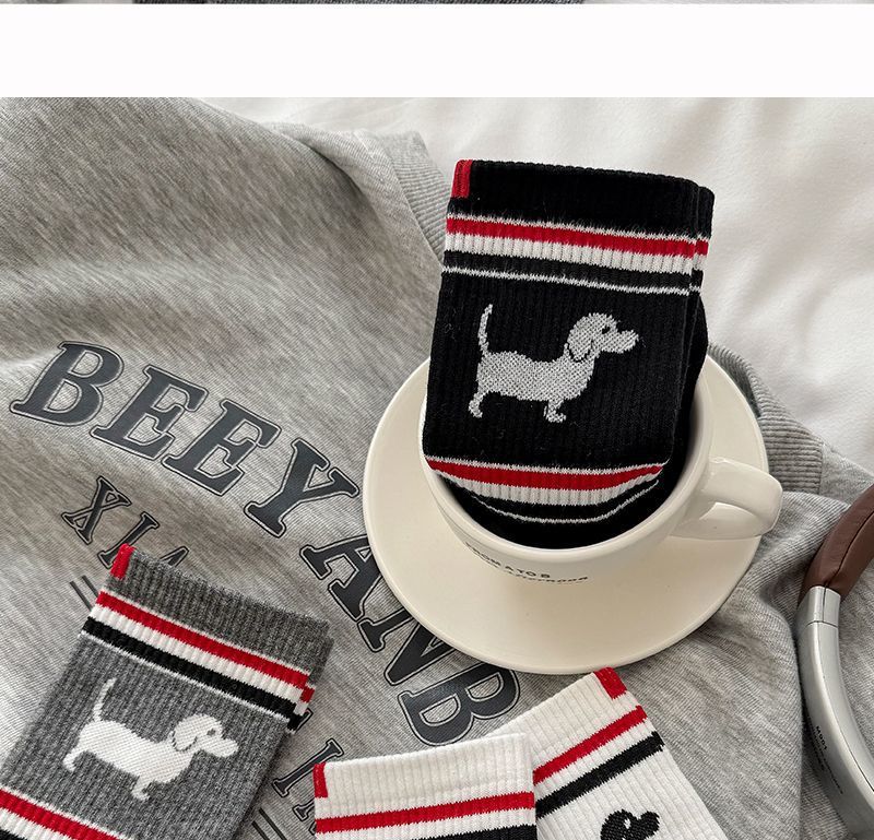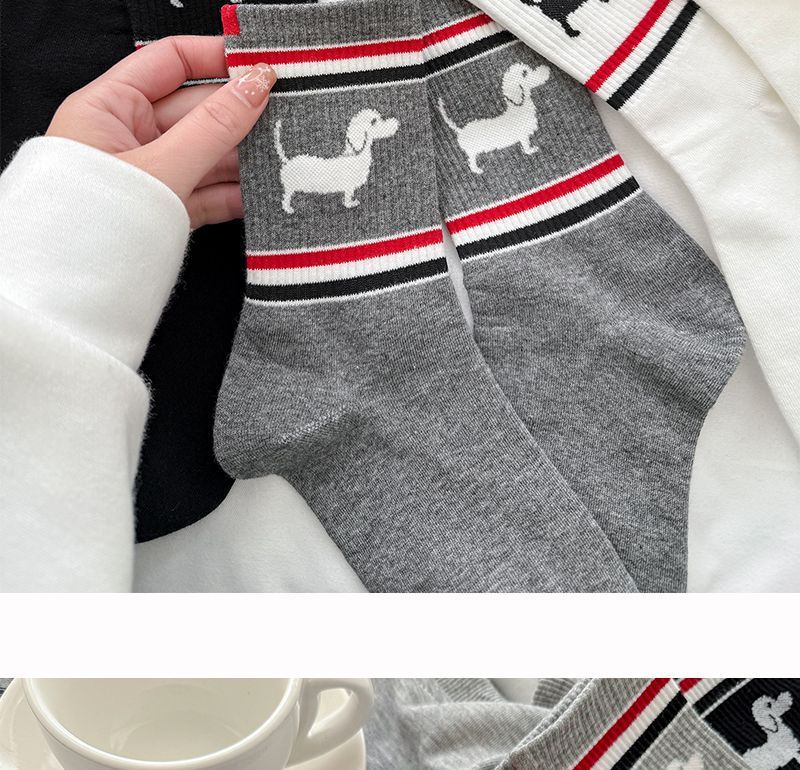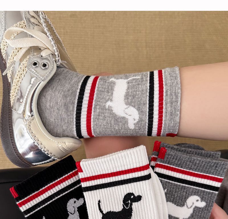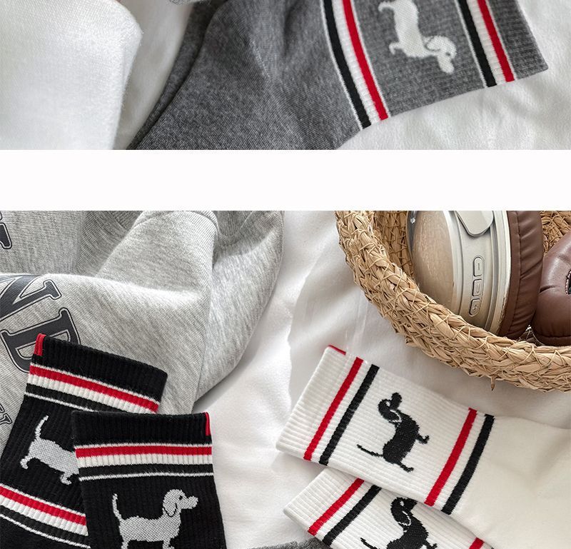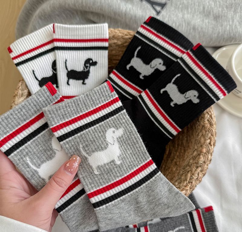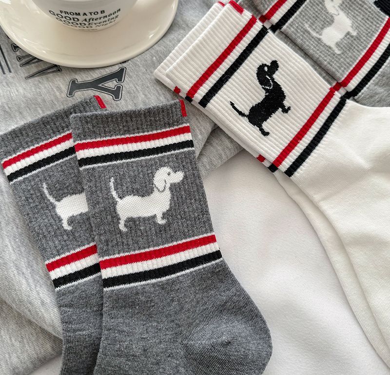 봄과 여름 TB 줄무늬 강아지 양말 한국 커플 만화 Ins 유행 양말 맞춤형 고급 간단한 양말