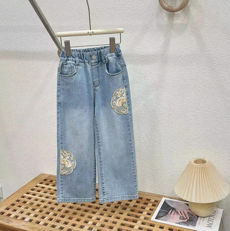 소녀의 새로운 중국 스타일 세트 여름 2024 새로운 어린이 중국 스타일 티셔츠 청바지 국가 스타일 투피스 여름 원피스스토어 가기