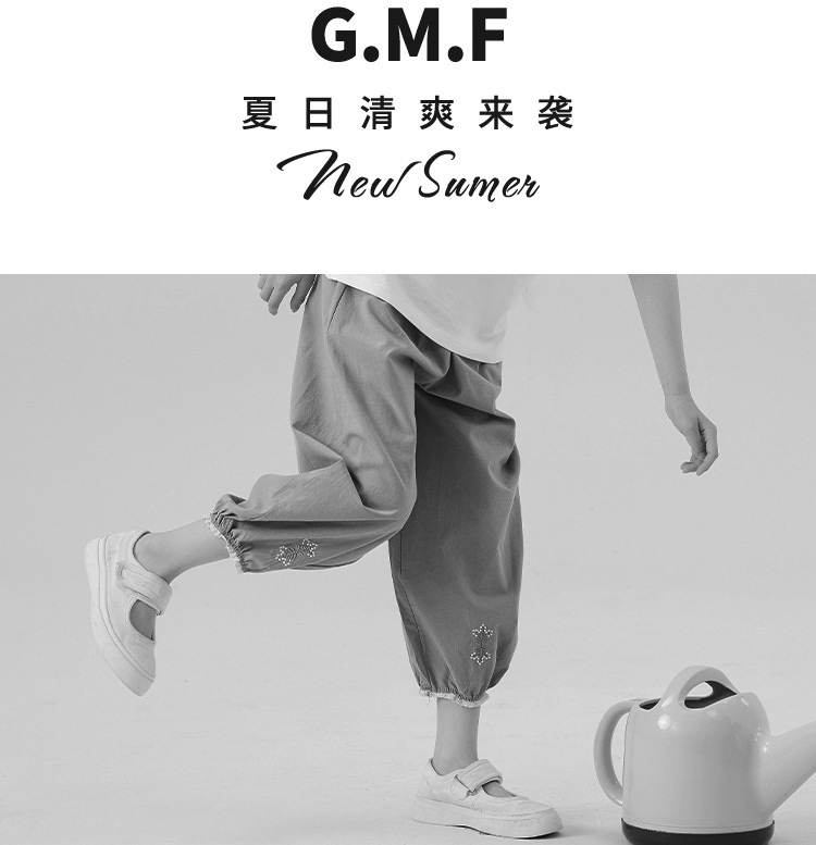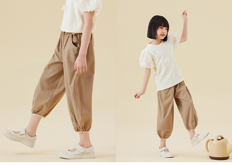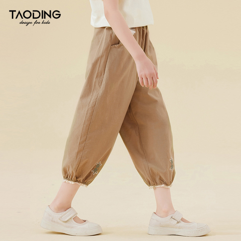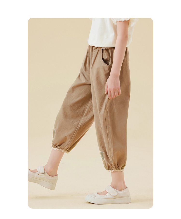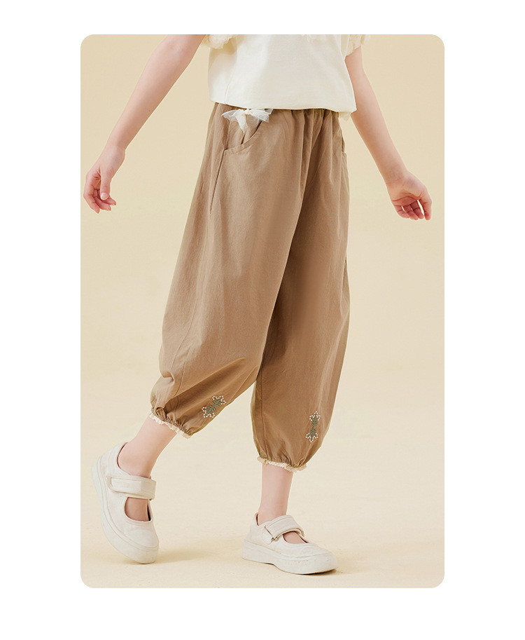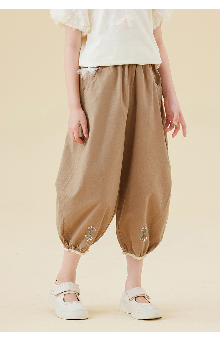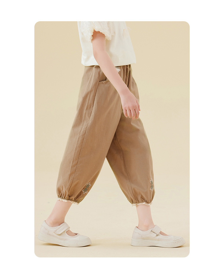Amoy Town Girls 'Casual Pants 여름 발 수집 시원한 느낌 자른 바지 솔리드 컬러 느슨한 꽃-꽃다발 블루머스토어 가기