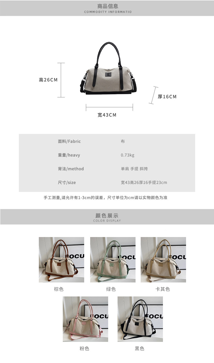 높은 가치의 새로운 패션 대용량 여행 가방 캐주얼 캔버스 단거리 가볍고 편리한 스포츠 가방 휴대용 보관 가방스토어 가기