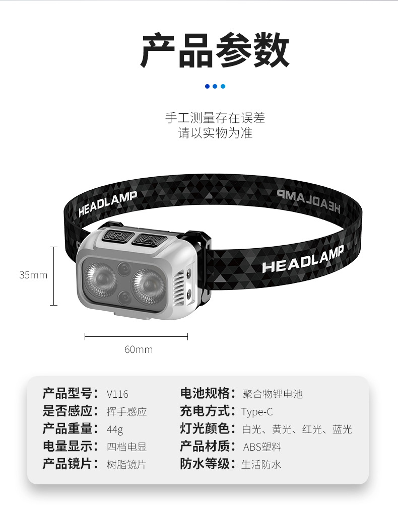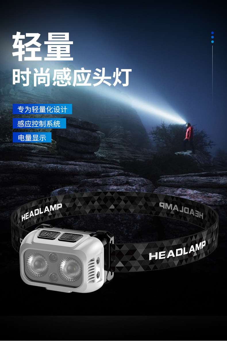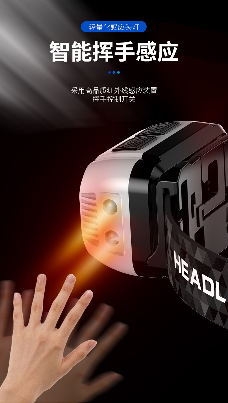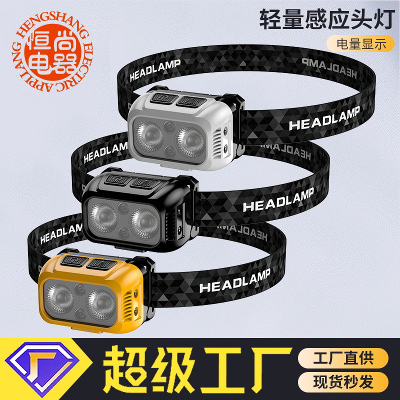 충전식 유도 헤드라이트, 휴대용 강한 빛, 매우 밝은 야간 낚시 조명, 야외 사이클링 및 등산, 경량 헤드 장착형 손전등 헤드라이트