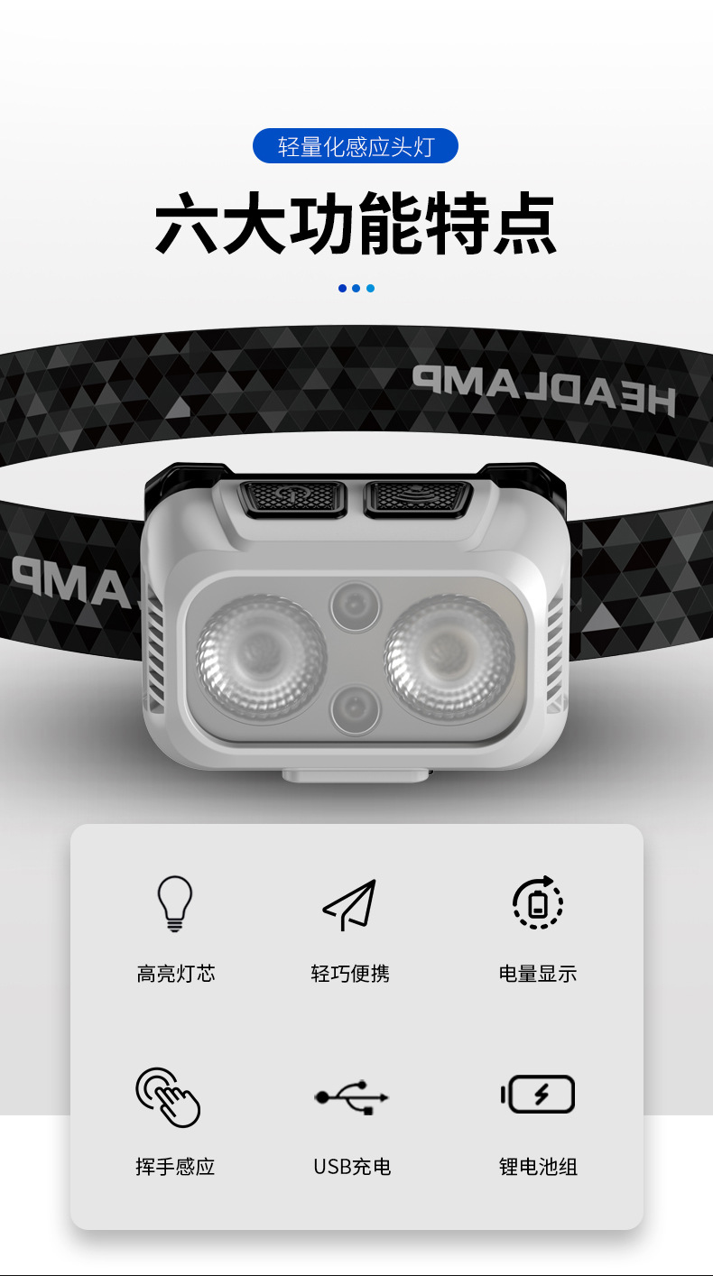 충전식 유도 헤드라이트, 휴대용 강한 빛, 매우 밝은 야간 낚시 조명, 야외 사이클링 및 등산, 경량 헤드 장착형 손전등 헤드라이트스토어 가기