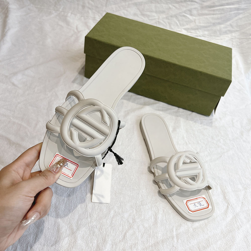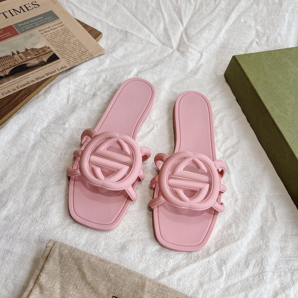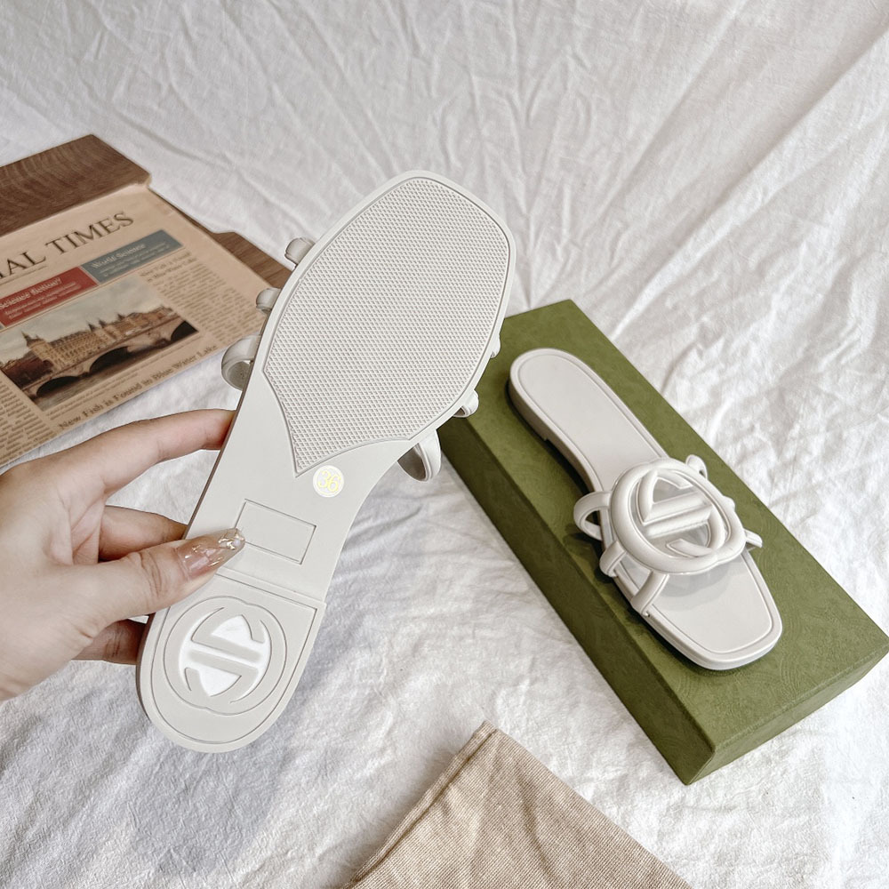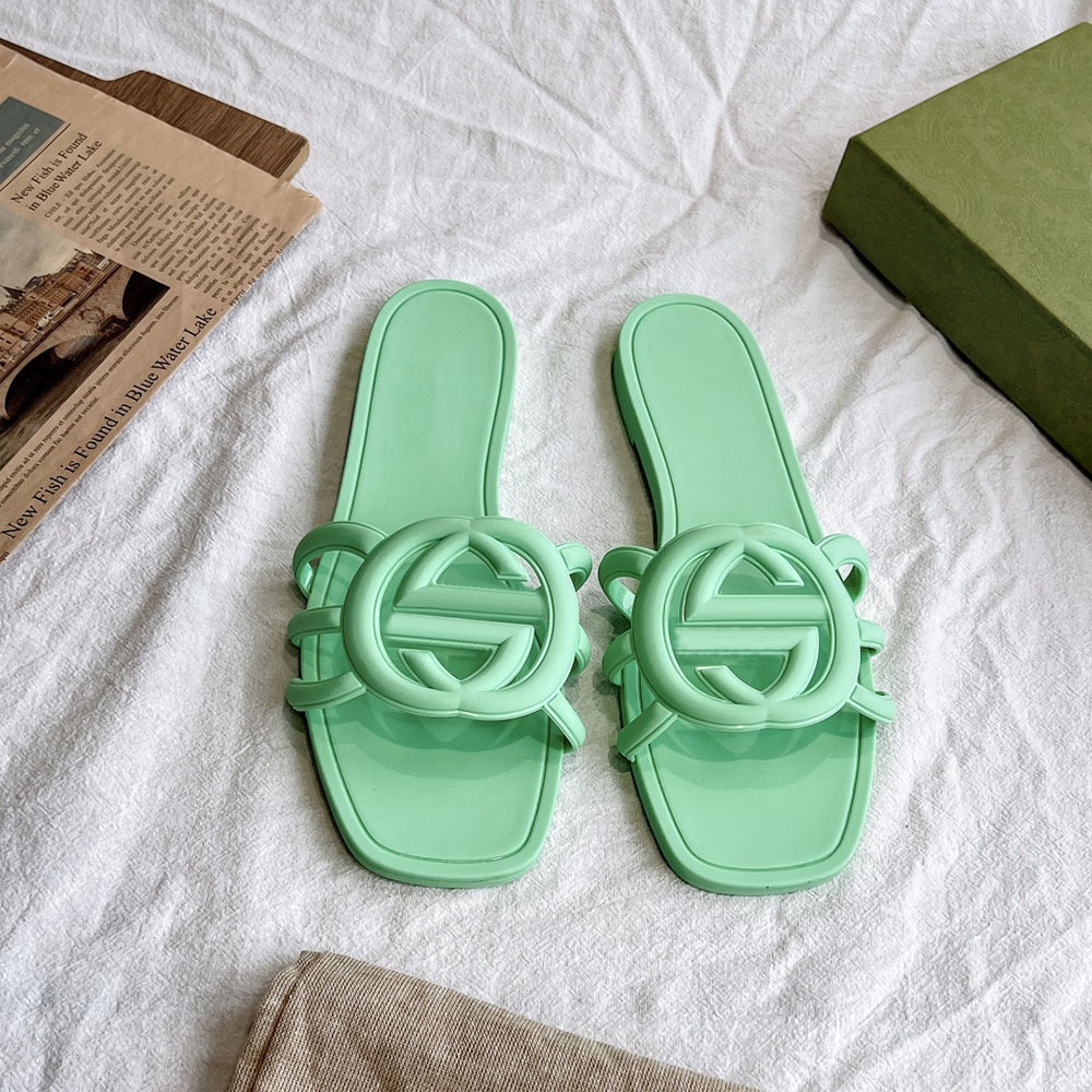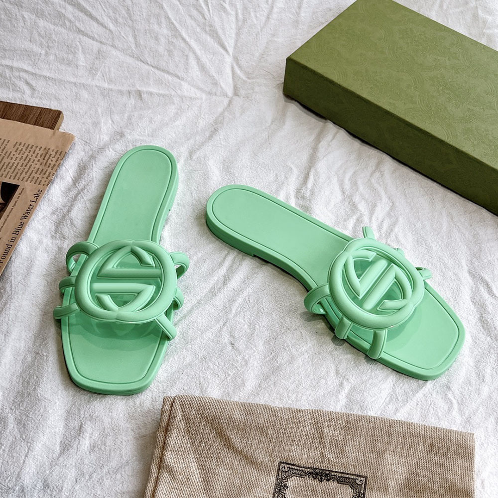 여름 인기 밝은 더블 G 인터록 플랫 슬리퍼, 다용도 미끄럼 방지 여성 샌들, 비치 젤리 슈즈스토어 가기