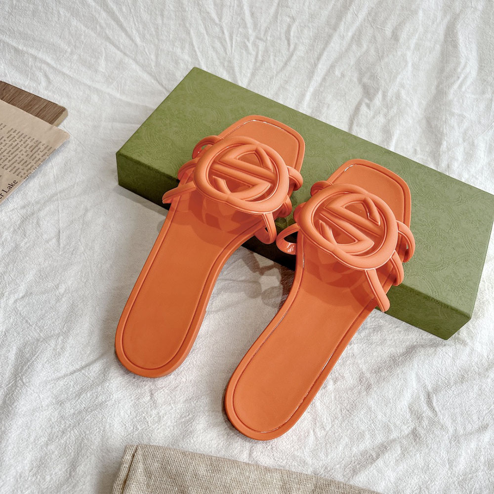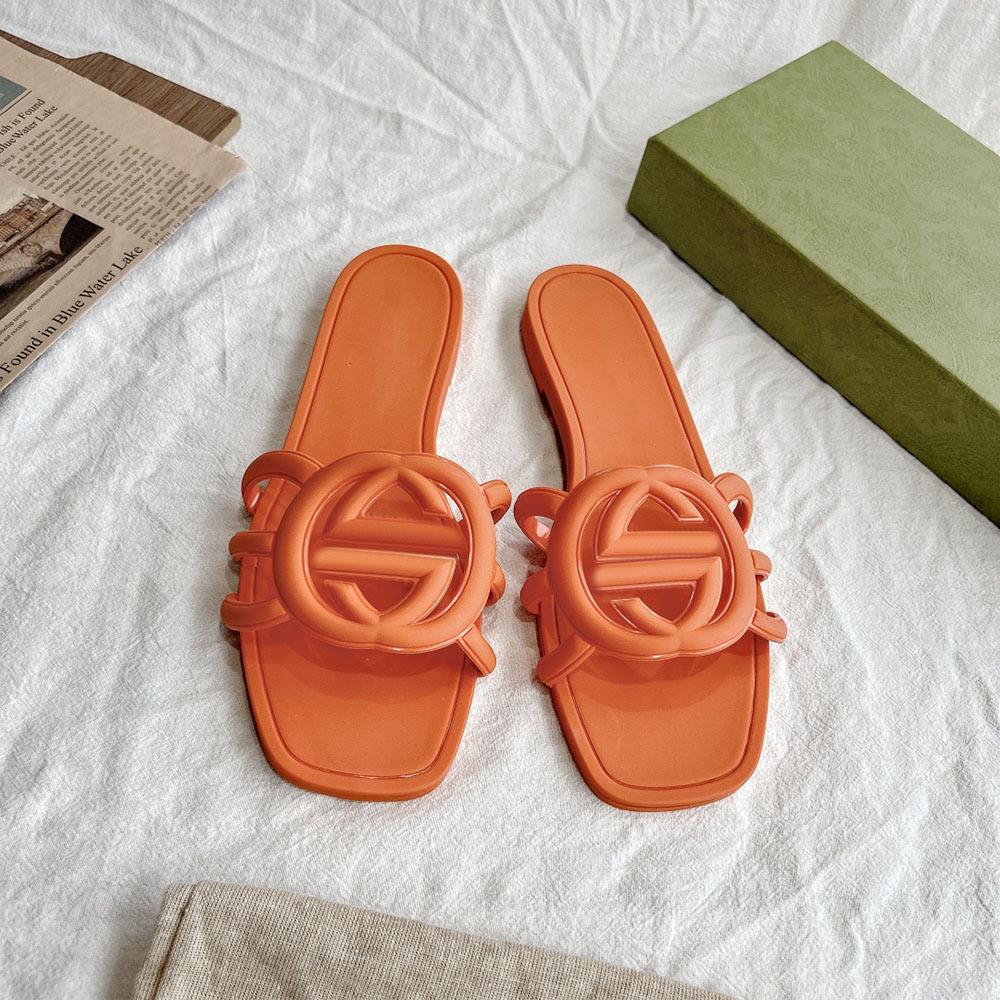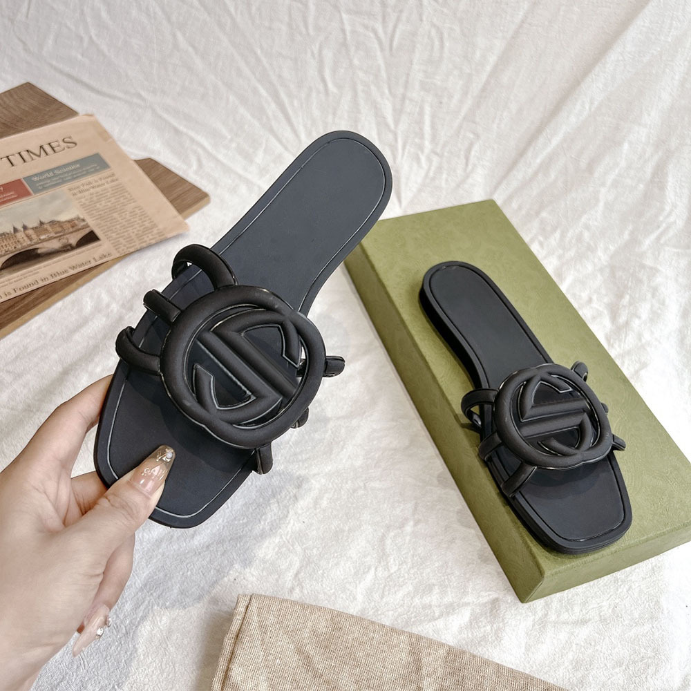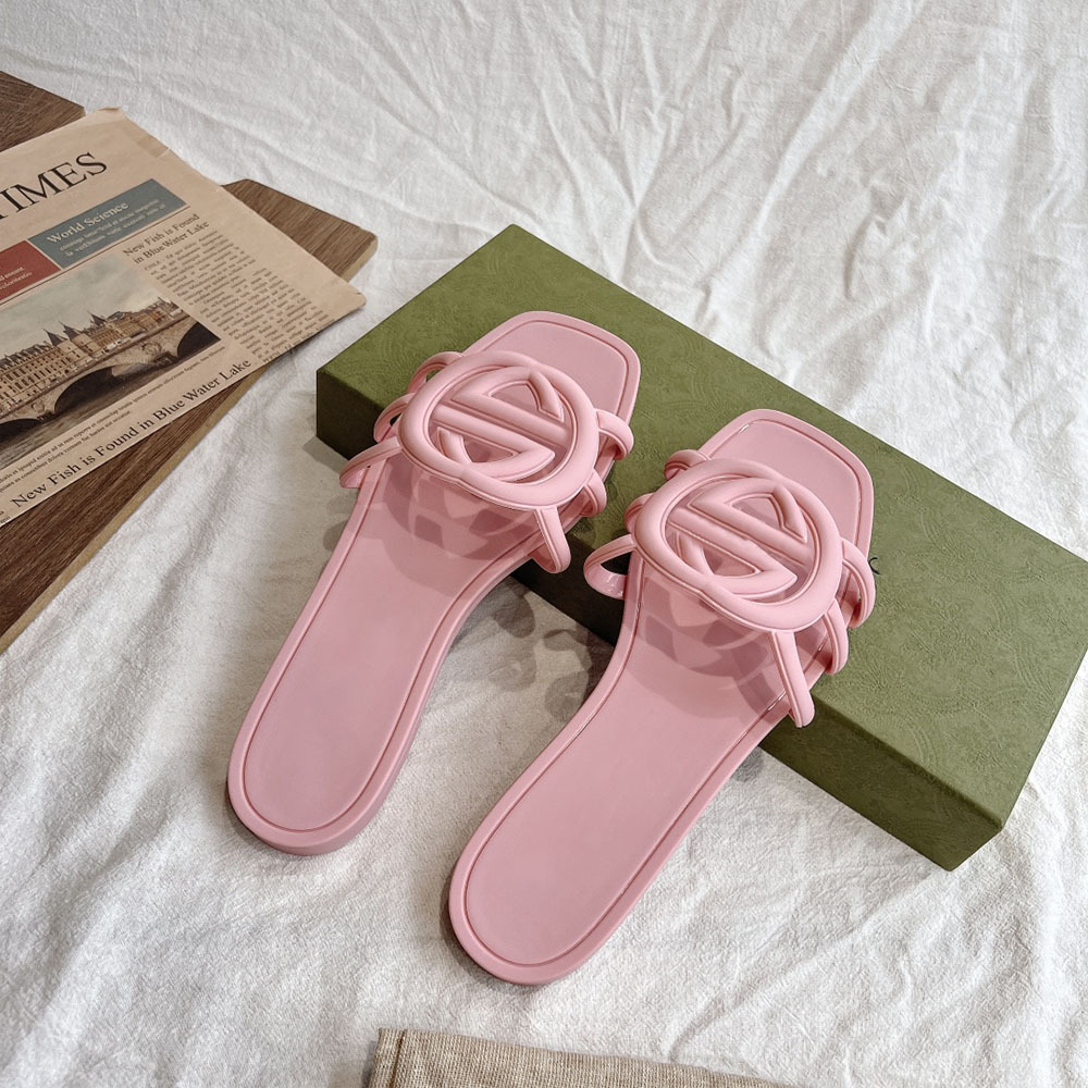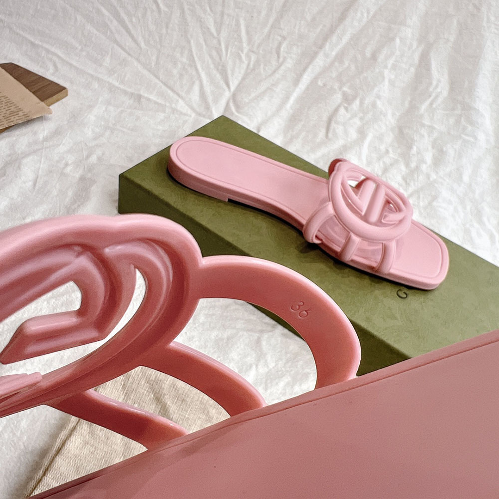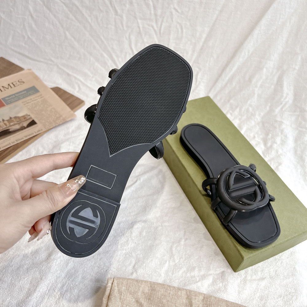 여름 인기 밝은 더블 G 인터록 플랫 슬리퍼, 다용도 미끄럼 방지 여성 샌들, 비치 젤리 슈즈스토어 가기
