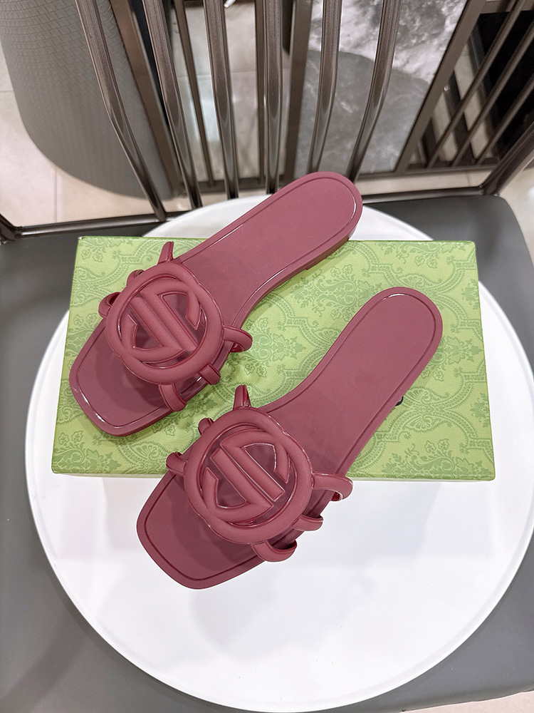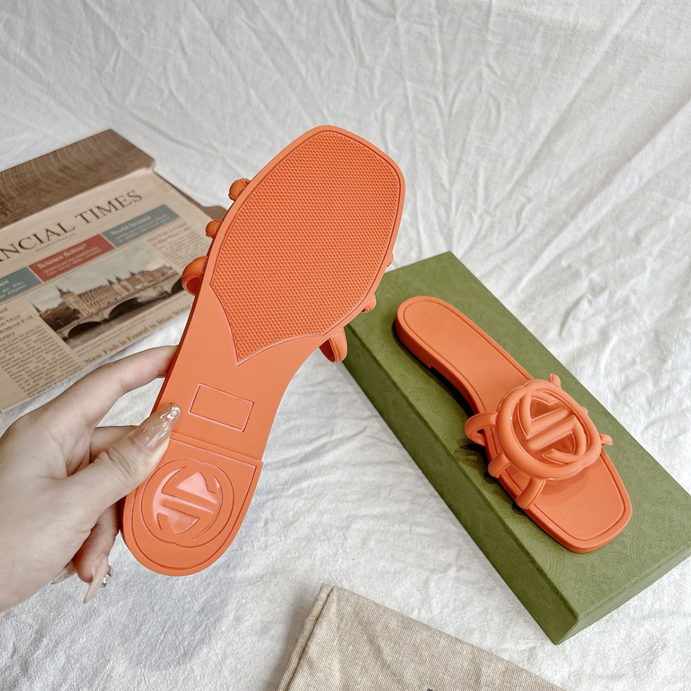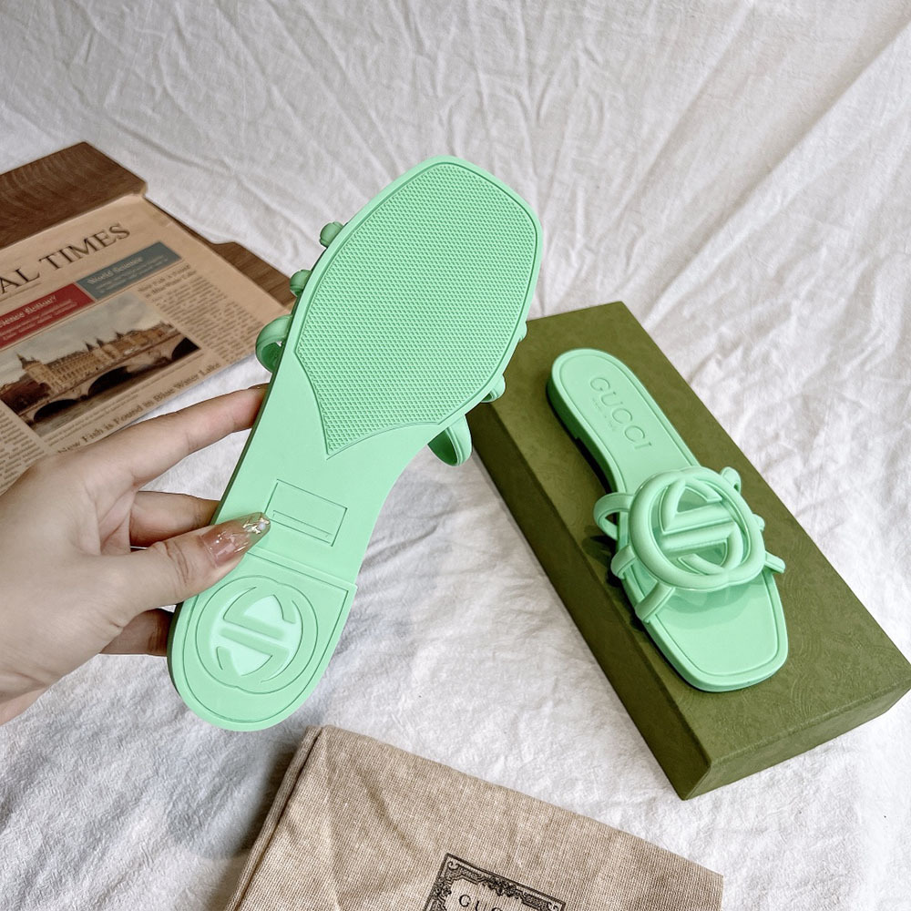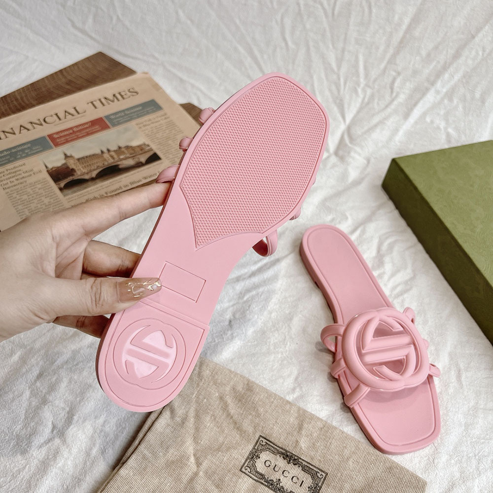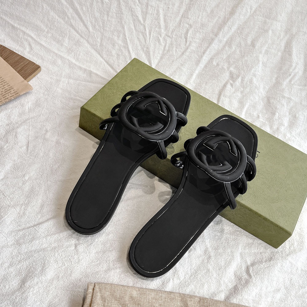 여름 인기 밝은 더블 G 인터록 플랫 슬리퍼, 다용도 미끄럼 방지 여성 샌들, 비치 젤리 슈즈스토어 가기