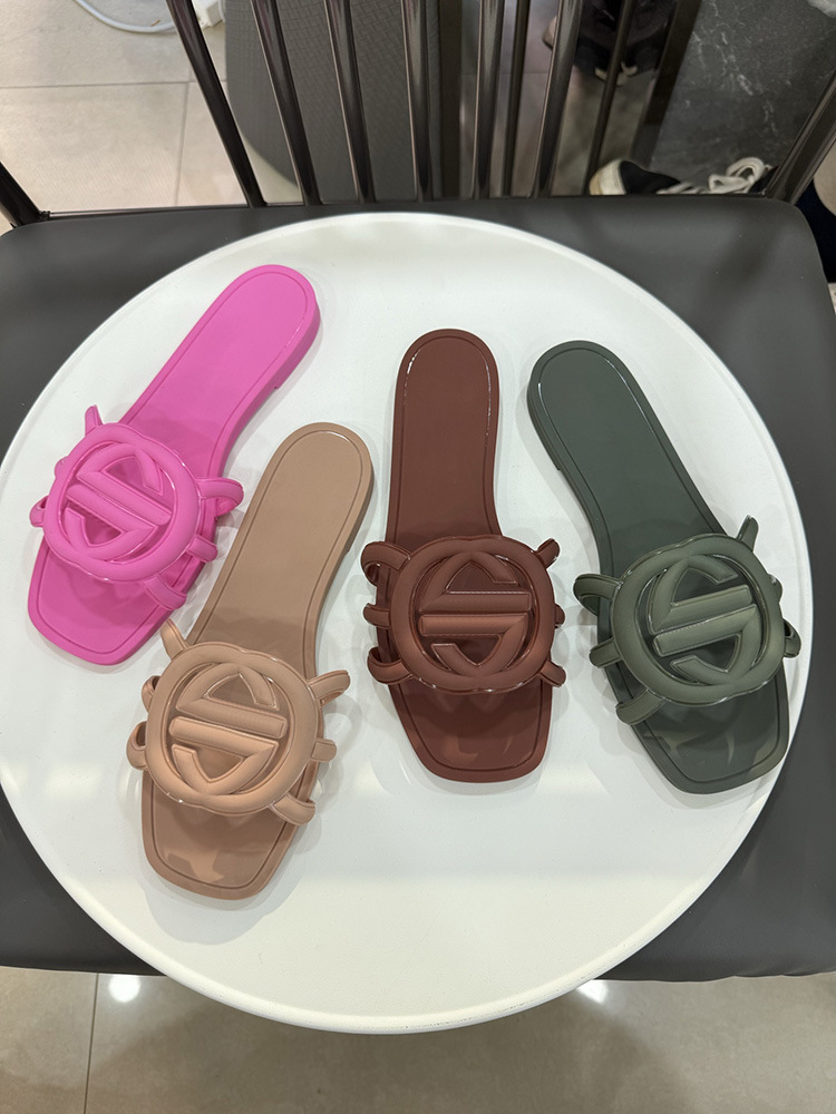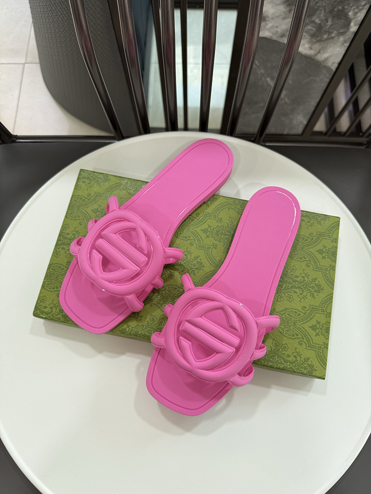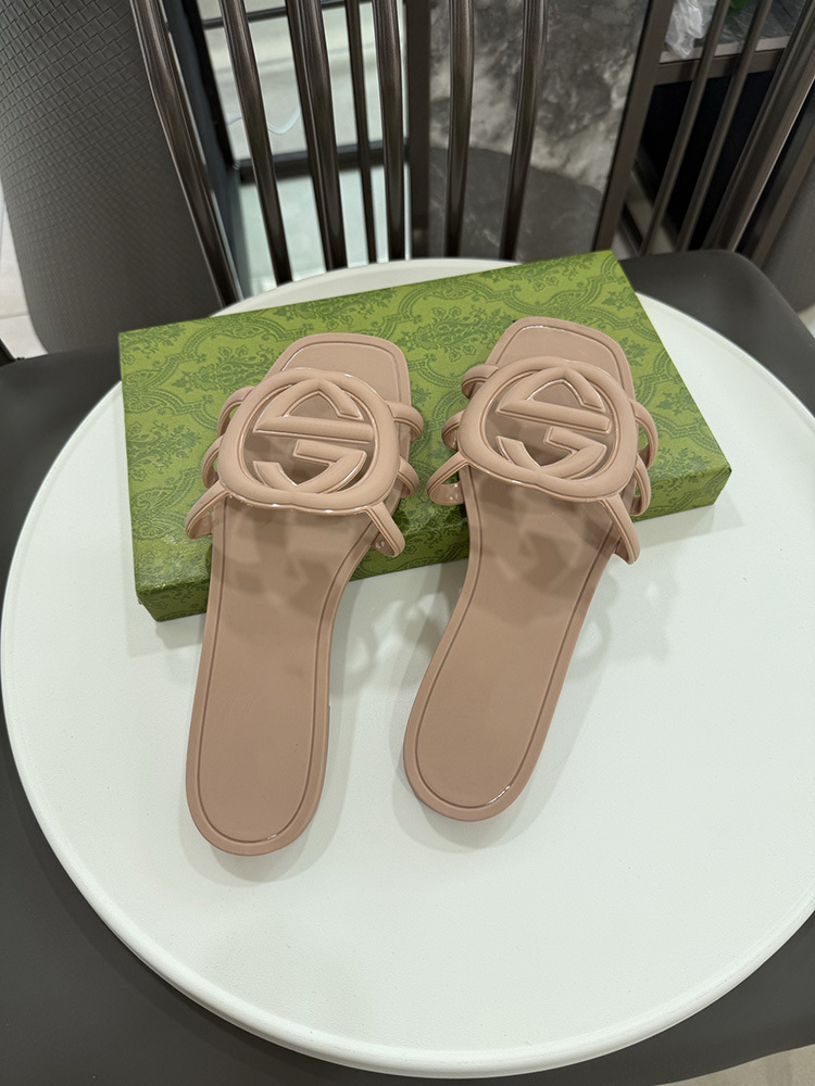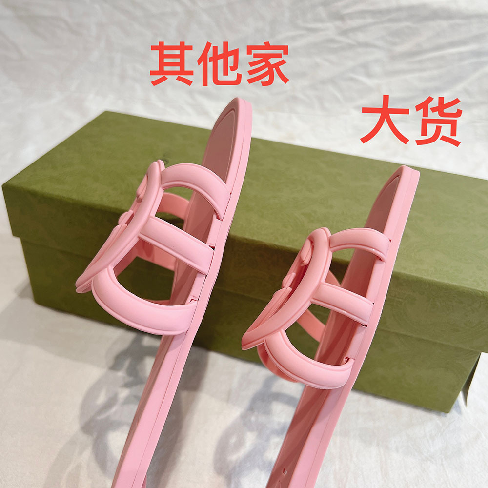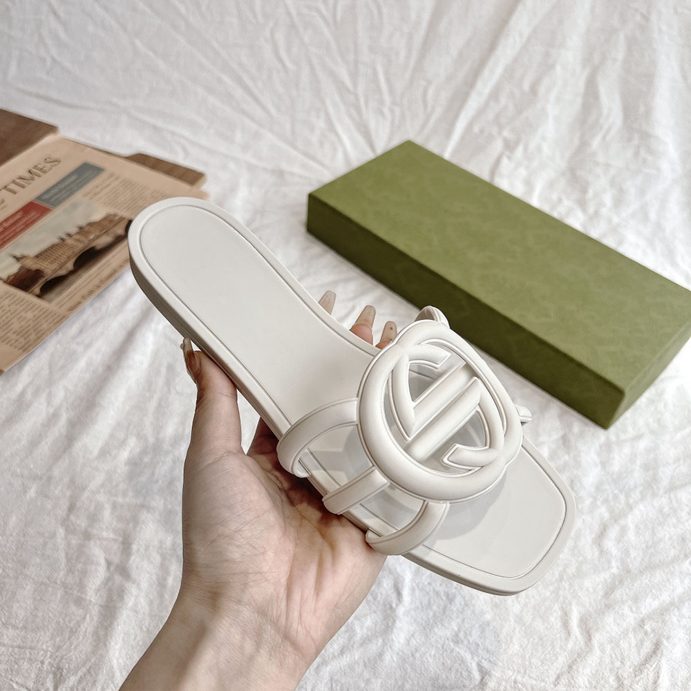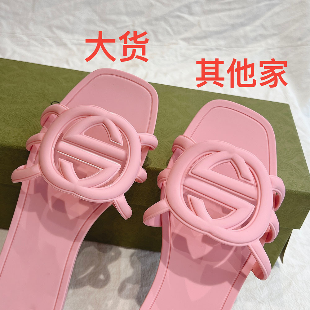 여름 인기 밝은 더블 G 인터록 플랫 슬리퍼, 다용도 미끄럼 방지 여성 샌들, 비치 젤리 슈즈스토어 가기