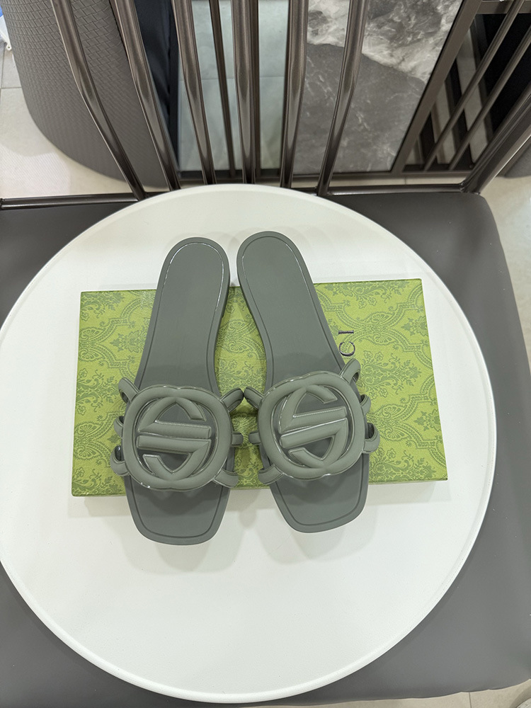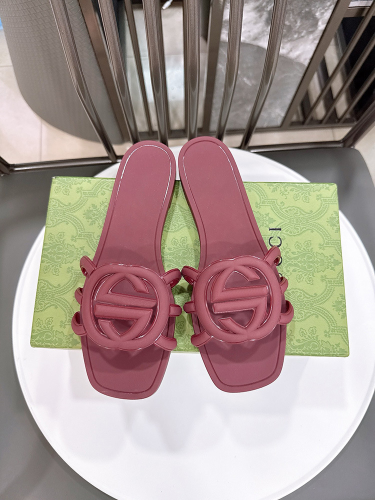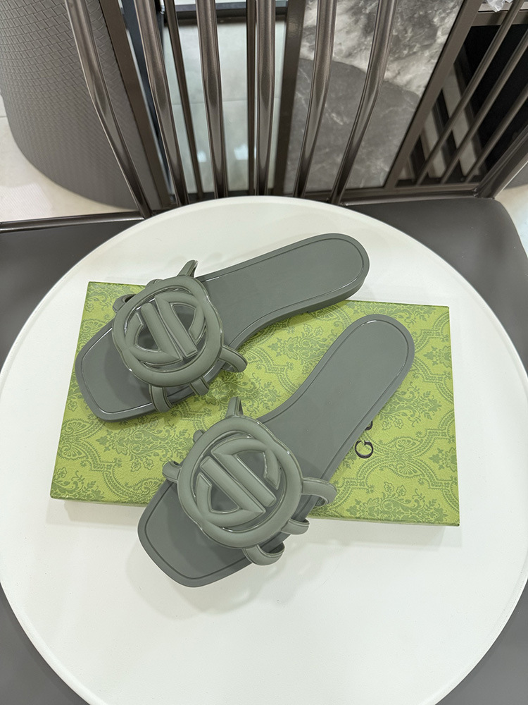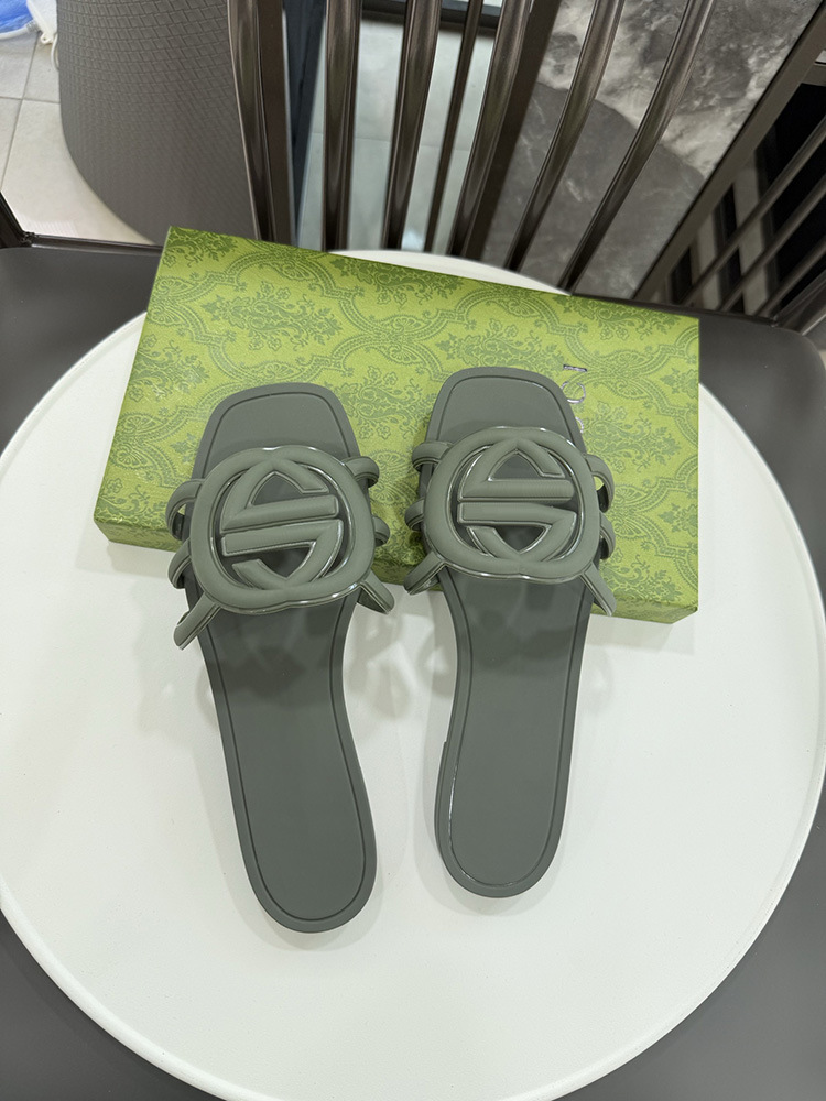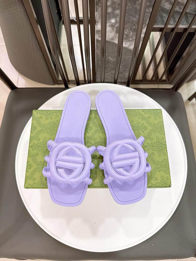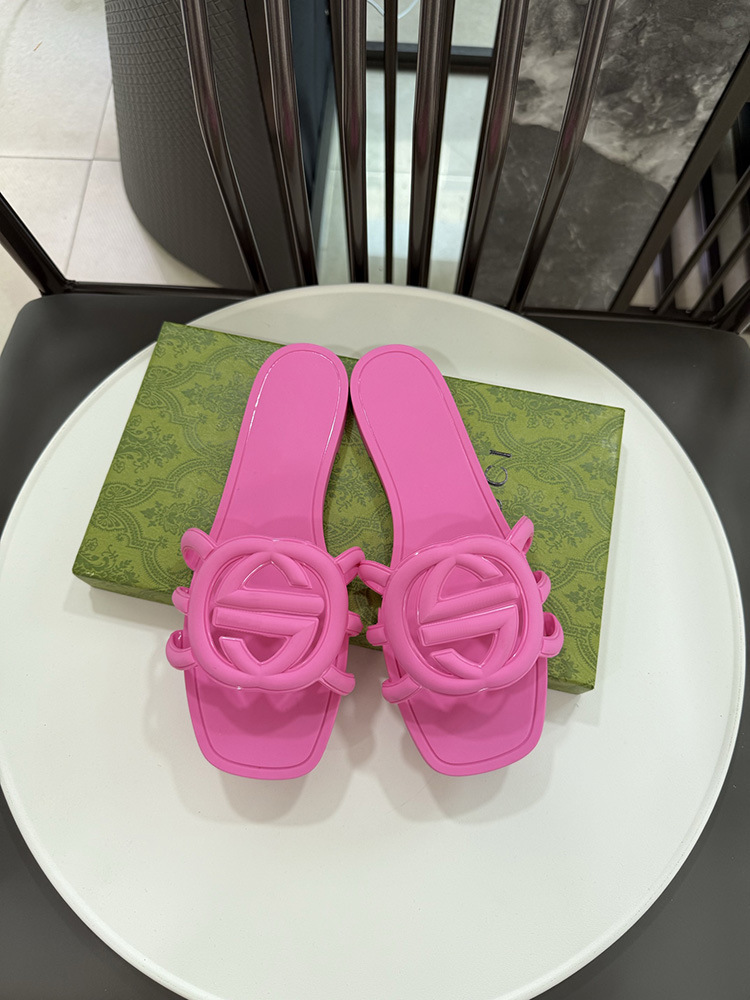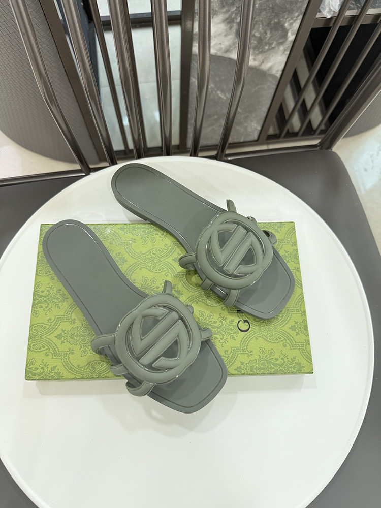 여름 인기 밝은 더블 G 인터록 플랫 슬리퍼, 다용도 미끄럼 방지 여성 샌들, 비치 젤리 슈즈스토어 가기