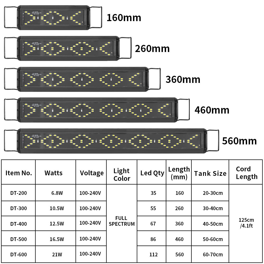 高亮灯珠,色彩鲜明。优选贴片灯珠,光源纯净自然,穿透性强。高清透亮,光照均匀,鱼和水草都适用;