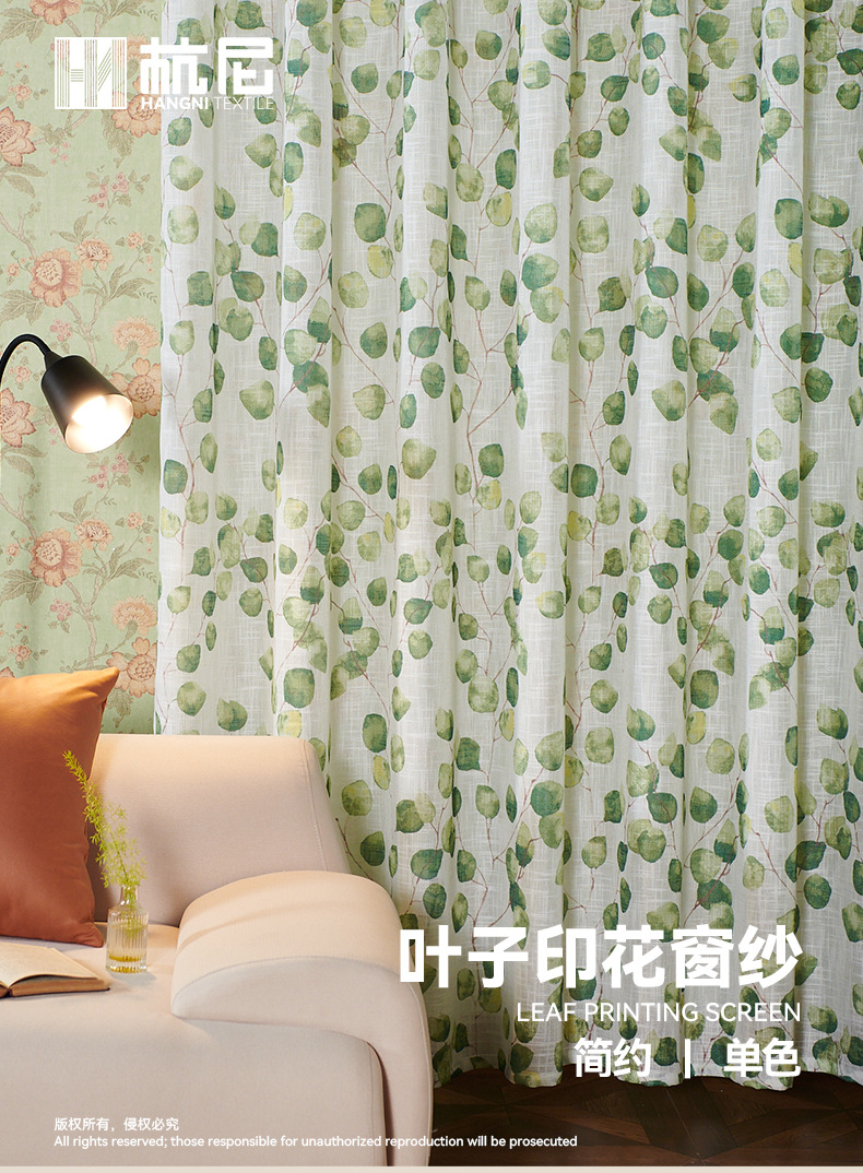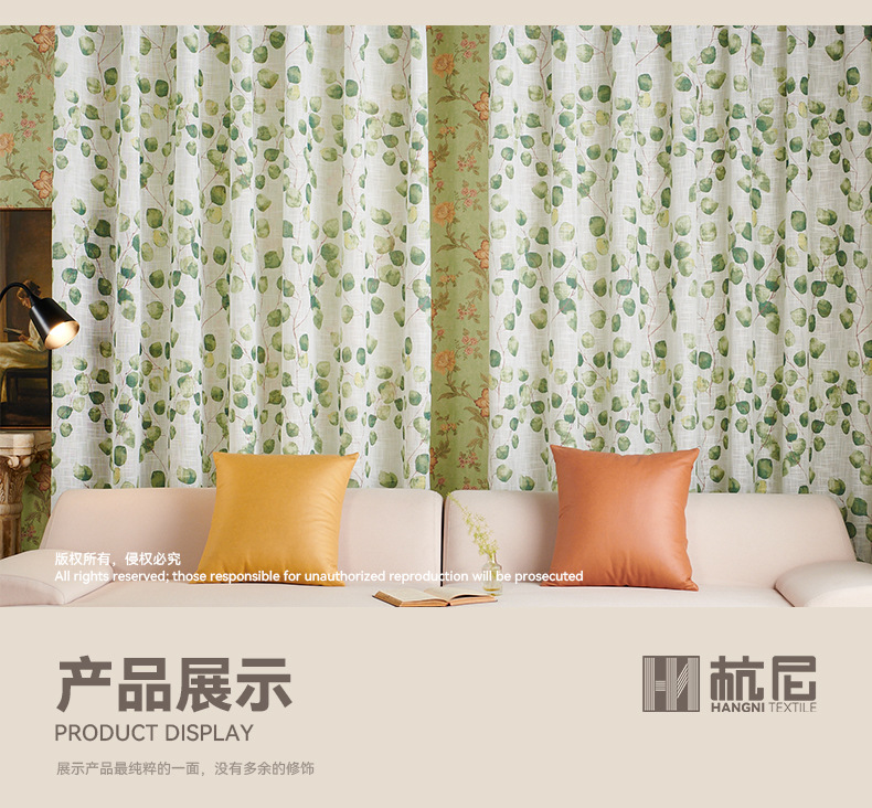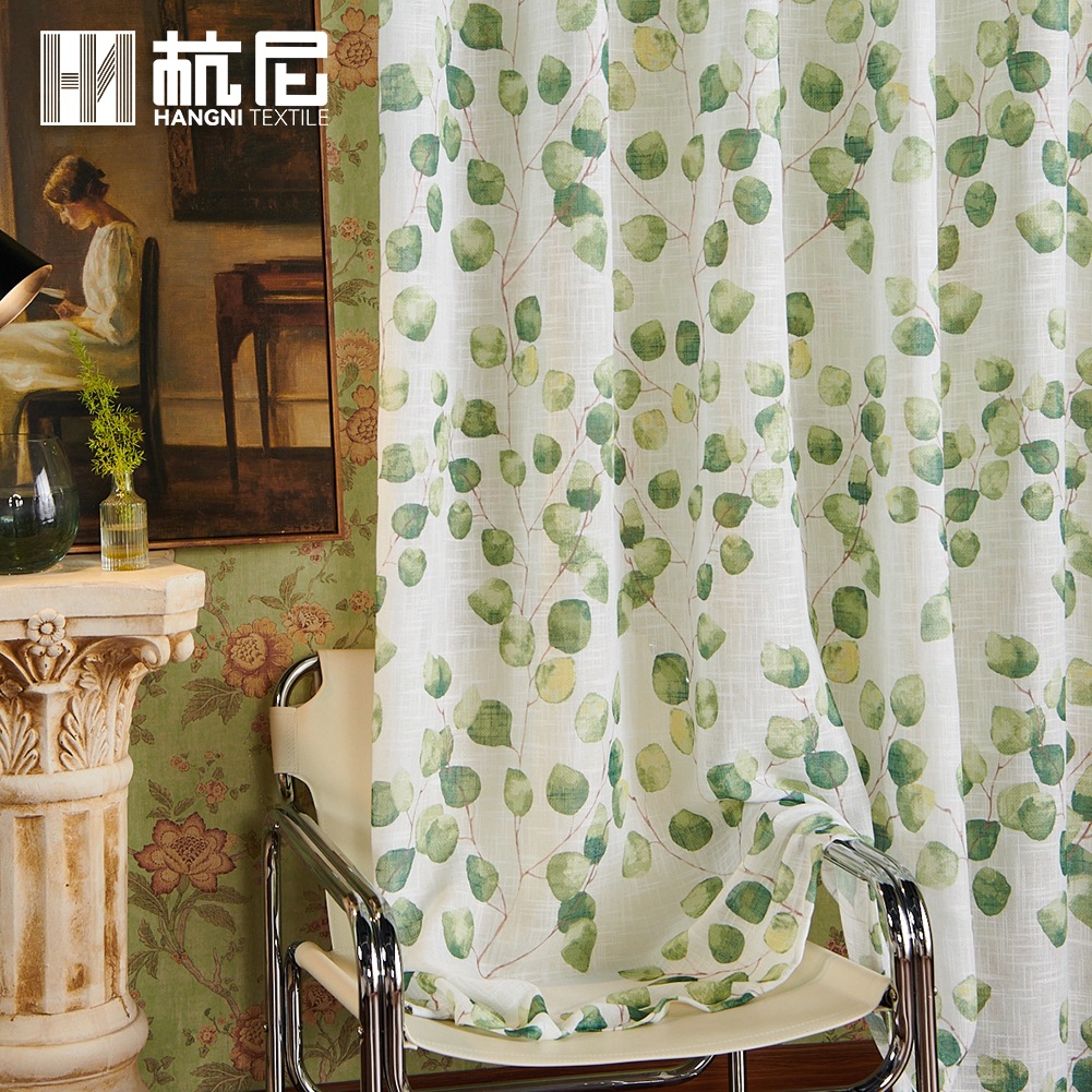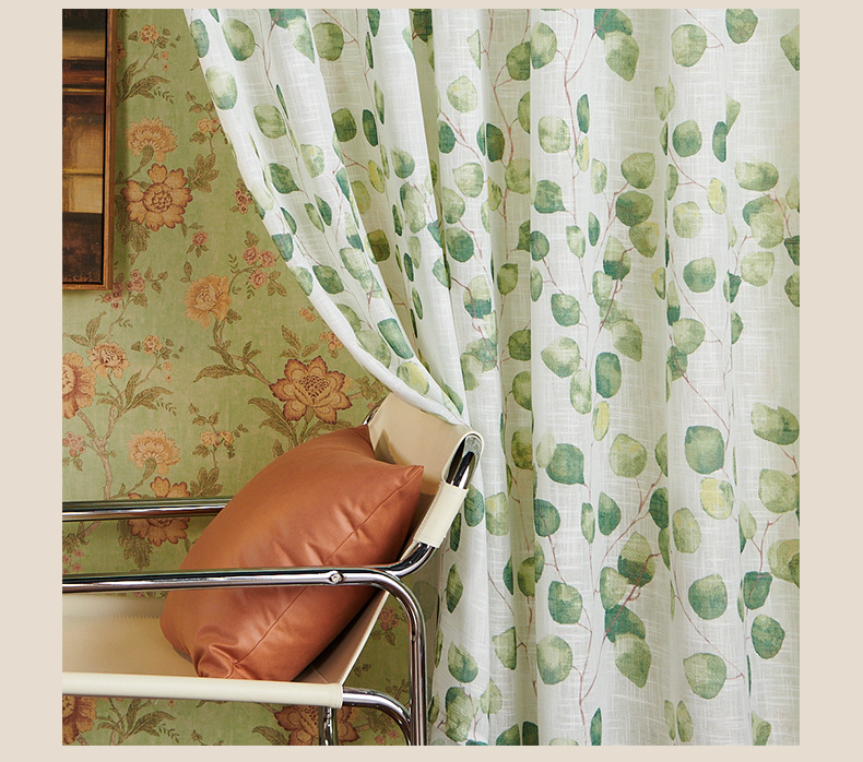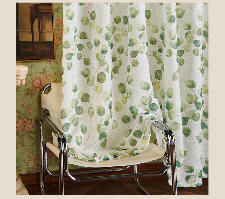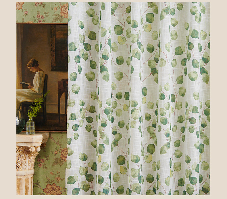 새로운 나뭇잎 무늬 커튼 쉐이드, 미국식 반투명 비침방지 커튼 쉐이드, 가정용 완제품 창문 쉐이드스토어 가기