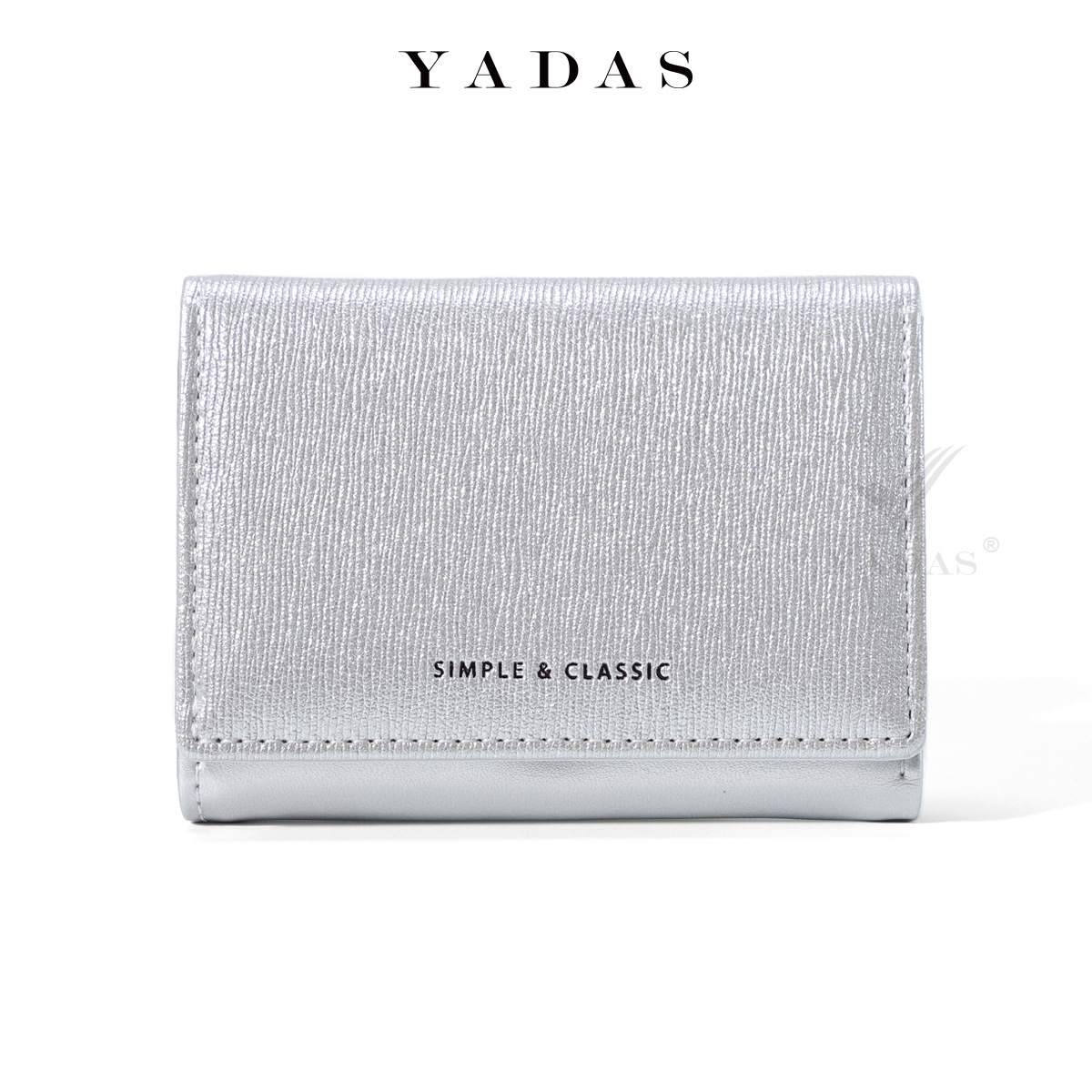 [진주 빛] YADAS 간단한 여성 카드 가방 패션 골드 및 실버 PU 가죽 짧은 트라이 폴드 코인 지갑스토어 가기