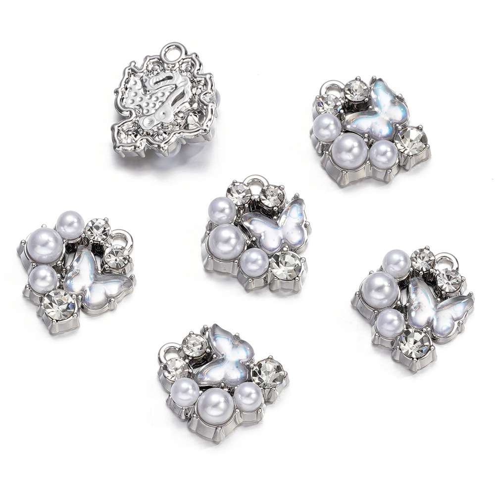 • 합금 다이아몬드 나비 진주 펜던트-흰색 K