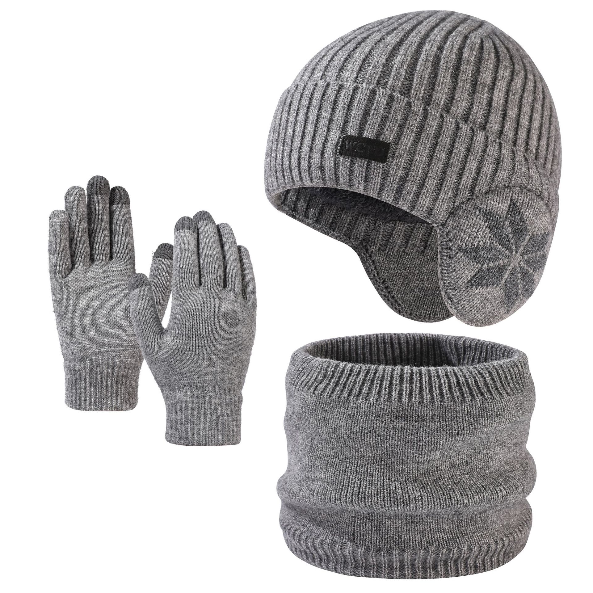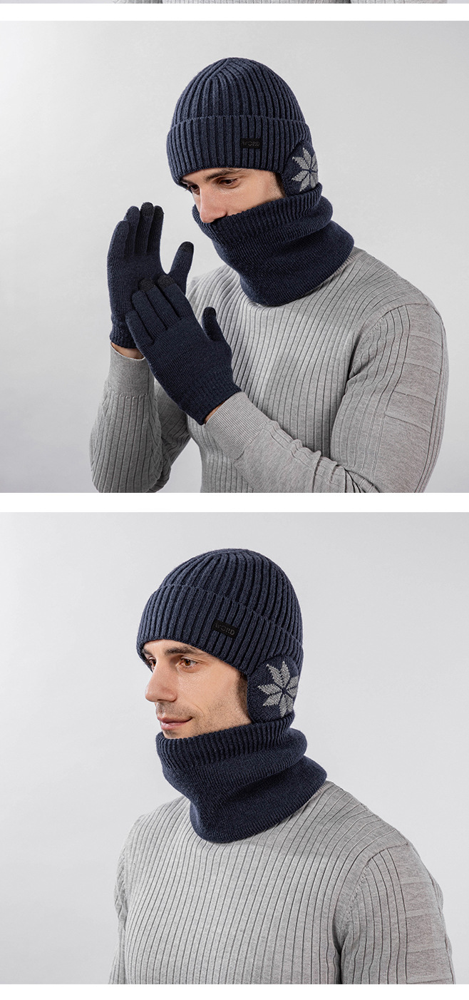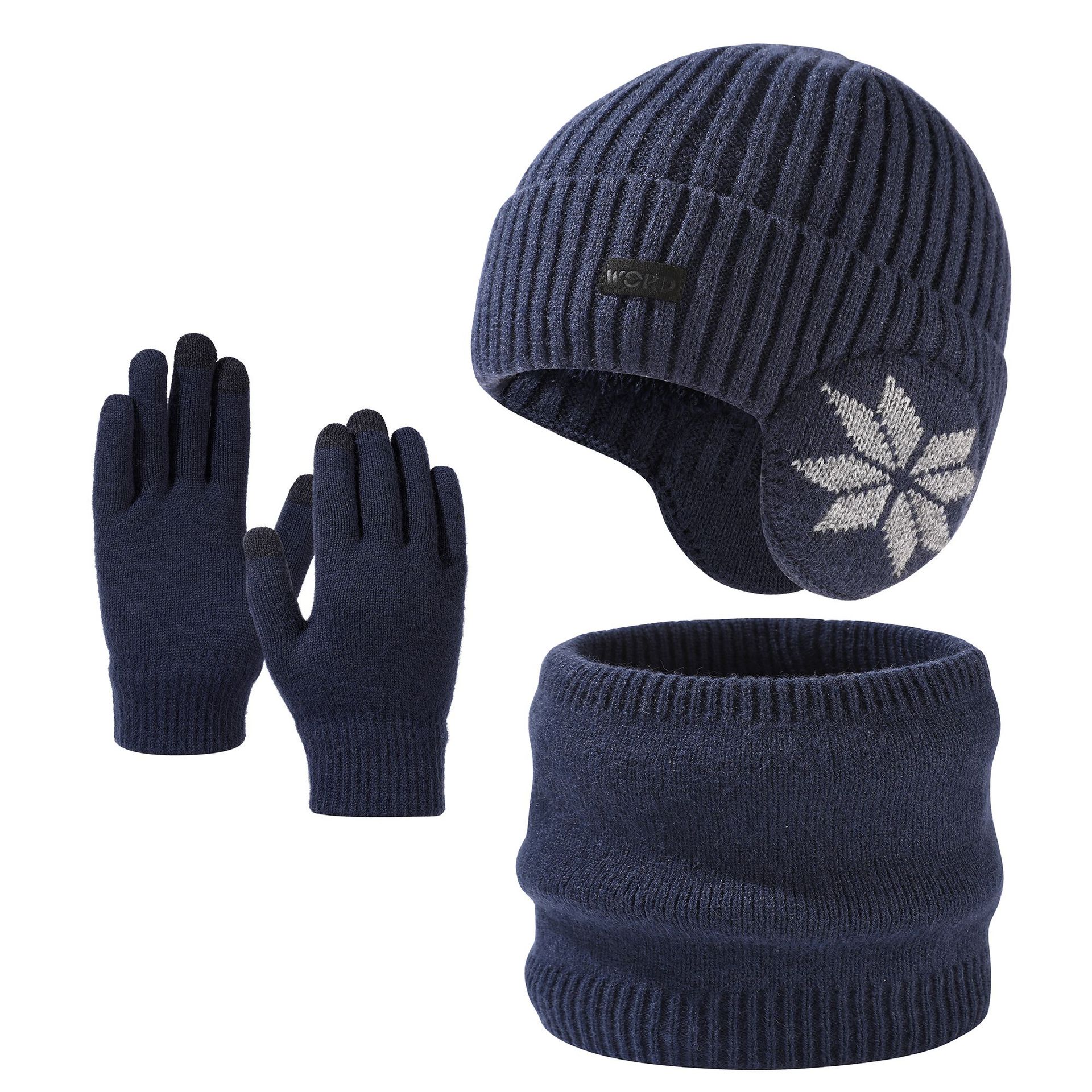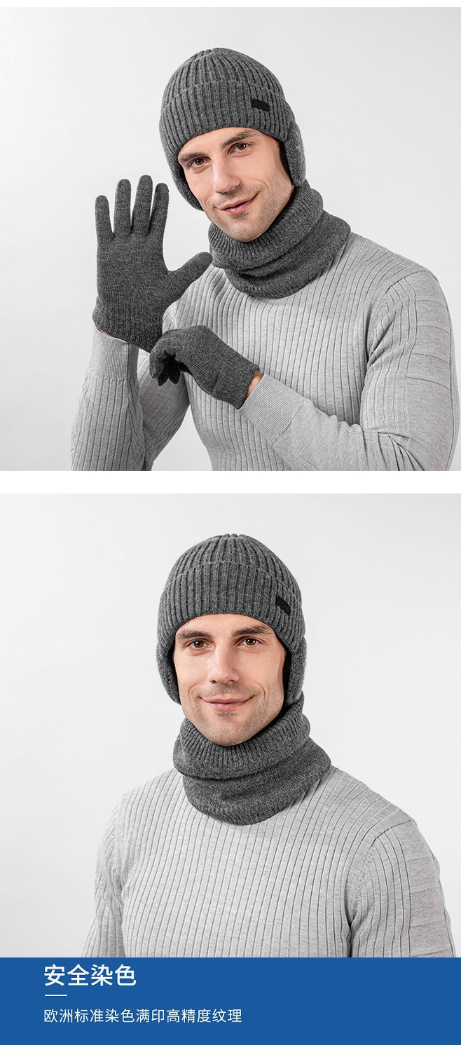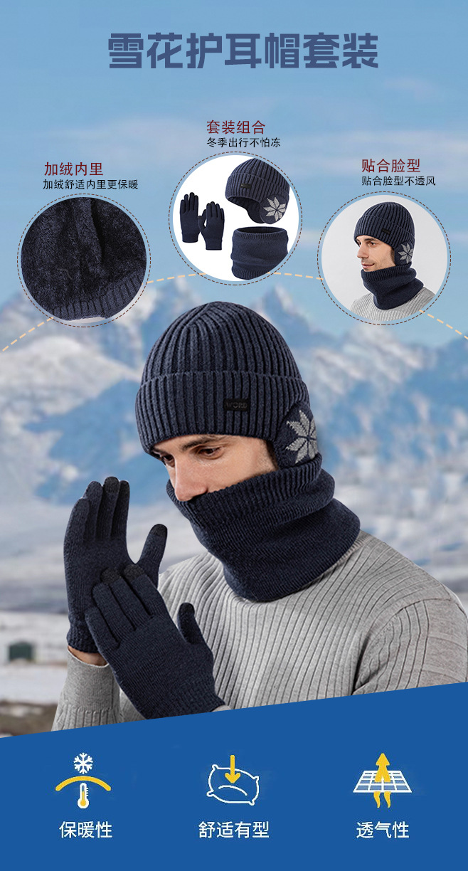 국경 간 두꺼운 남성용 니트 모자 스카프 장갑 3 피스 세트 겨울 야외 귀 보호 따뜻한 울 캡 세트