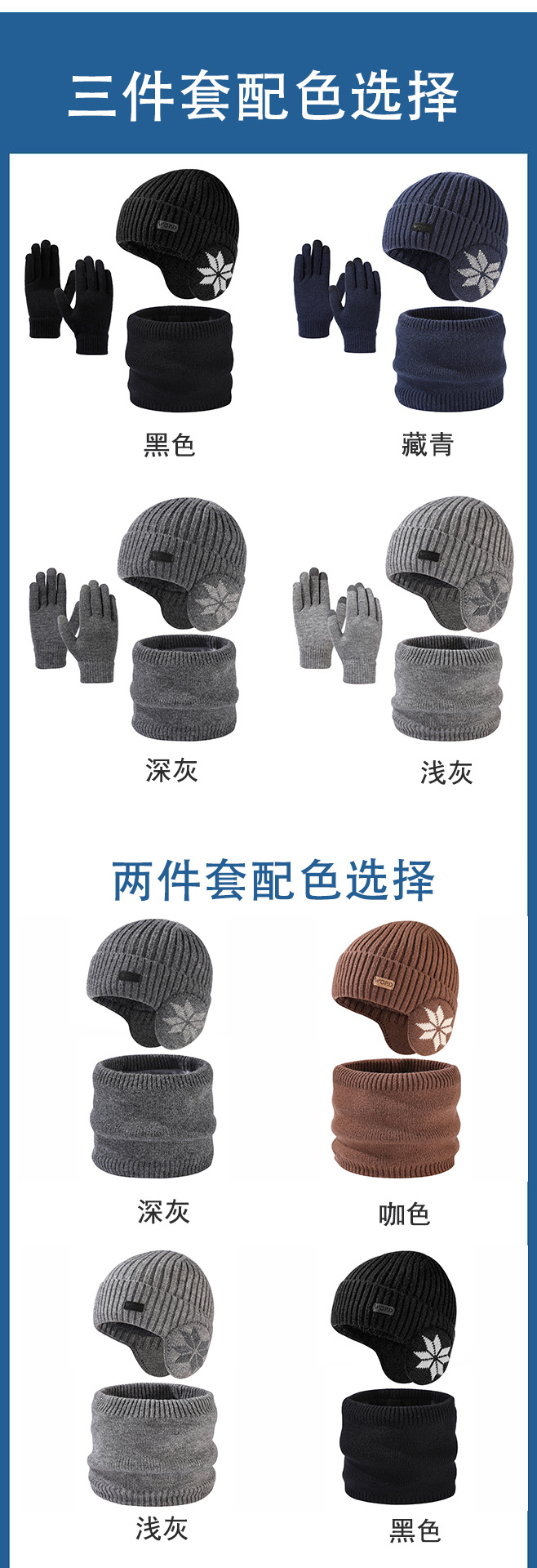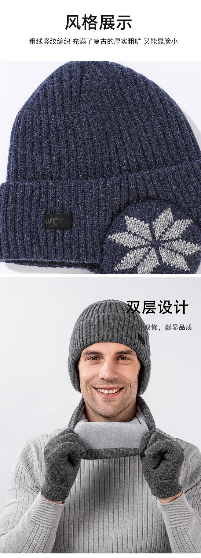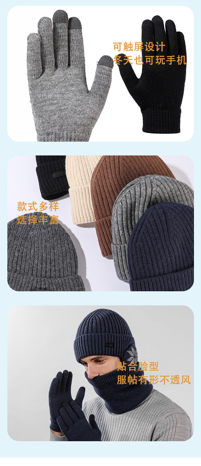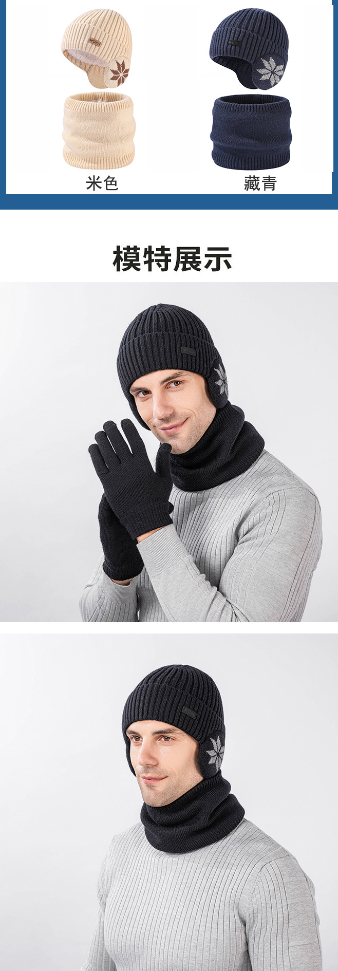 국경 간 두꺼운 남성용 니트 모자 스카프 장갑 3 피스 세트 겨울 야외 귀 보호 따뜻한 울 캡 세트