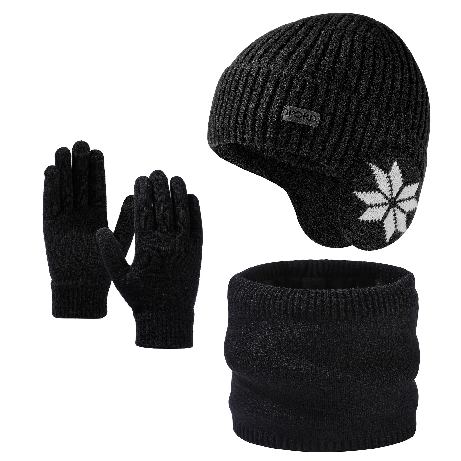 • 눈송이 3 피스 귀 보호-검은 색