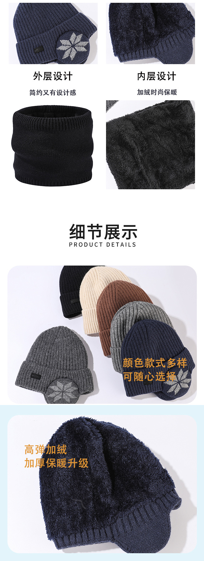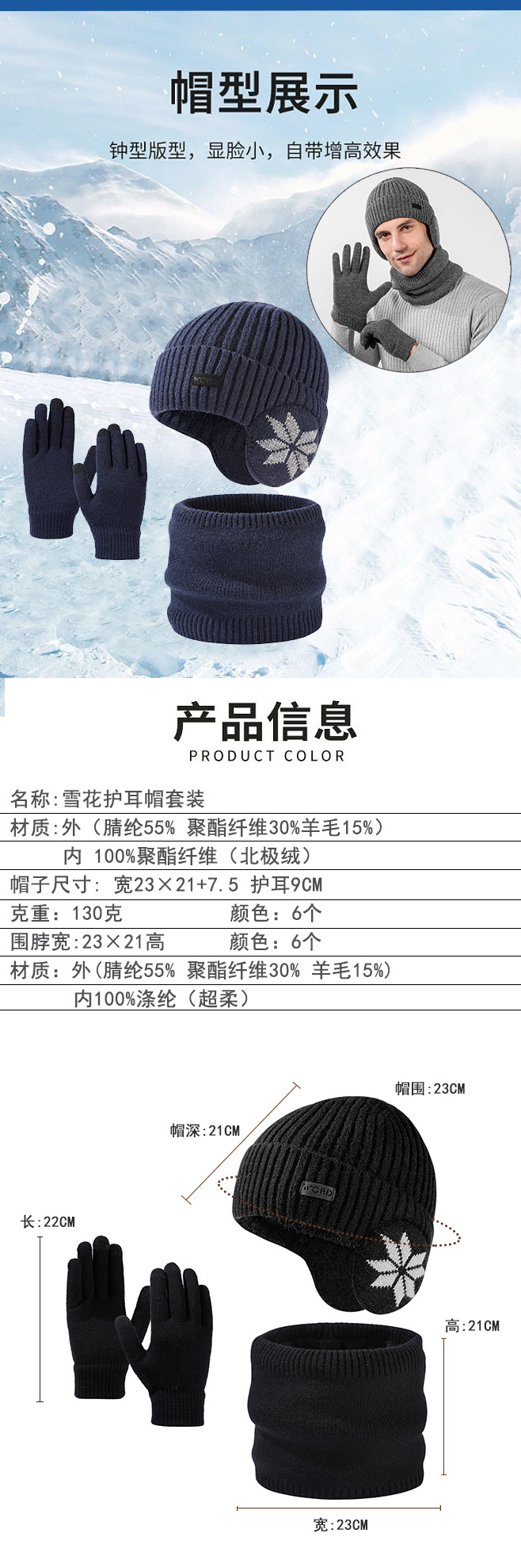 • 눈송이 귀 보호 3 피스 세트 네이비
