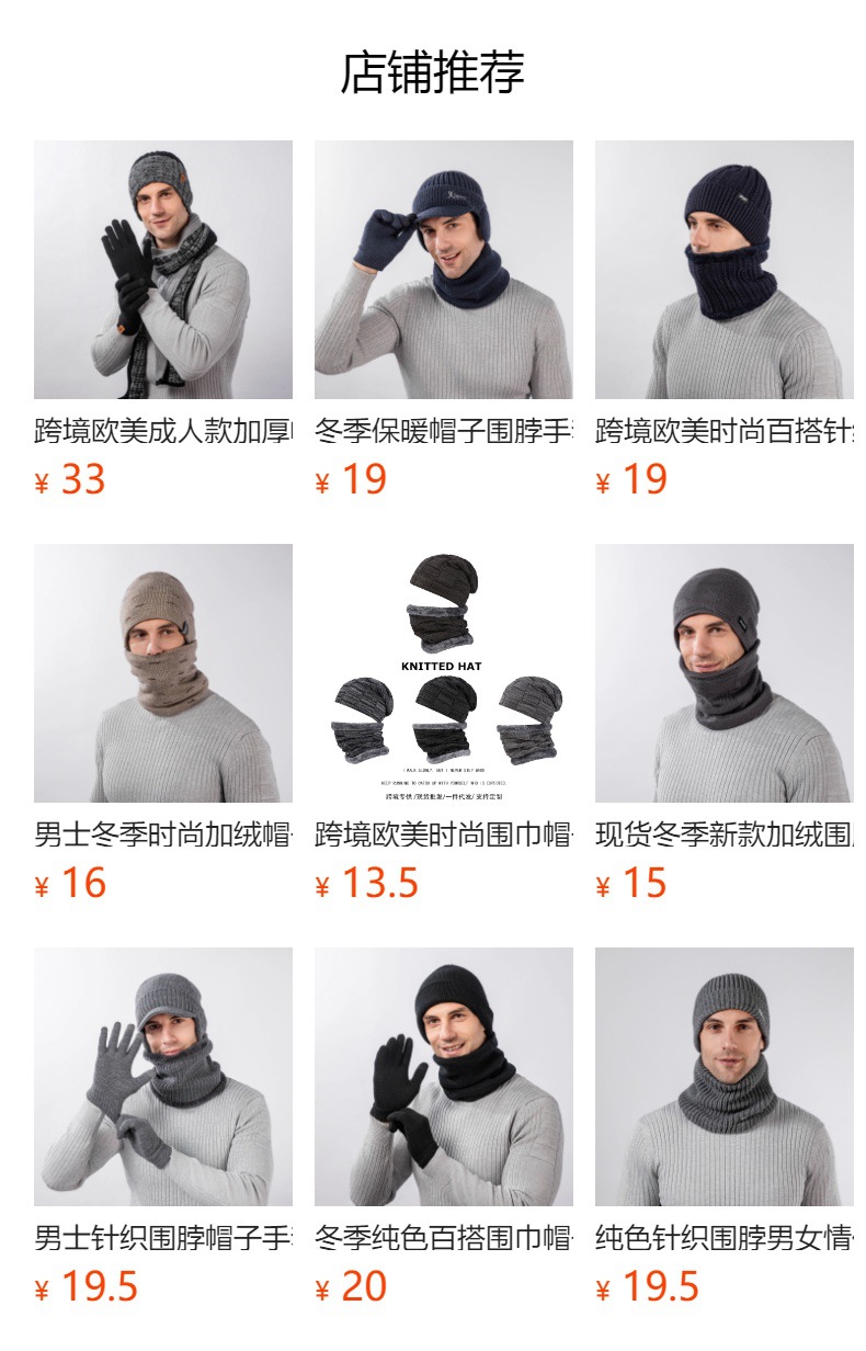 국경 간 두꺼운 남성용 니트 모자 스카프 장갑 3 피스 세트 겨울 야외 귀 보호 따뜻한 울 캡 세트스토어 가기