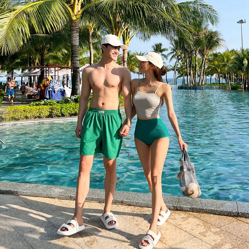 2024 새로운 분할 커플 수영복 여성 슬림 배꼽 커버 비치 홀리데이 온천 수영복 여성 [머리카락의 한 세대]