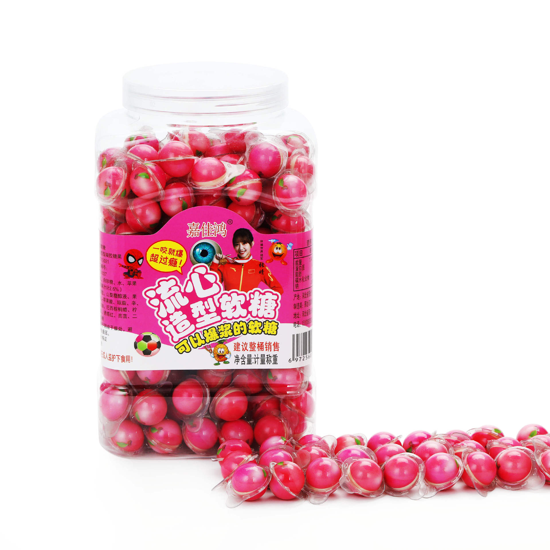 큰 눈알 모양 주스 젤리 사탕, 흰 복숭아 풍부한 주스가 든 마시멜로, 3D 폭발성 귀여운 볼 사탕, 캐주얼하고 탄력 있는 사탕