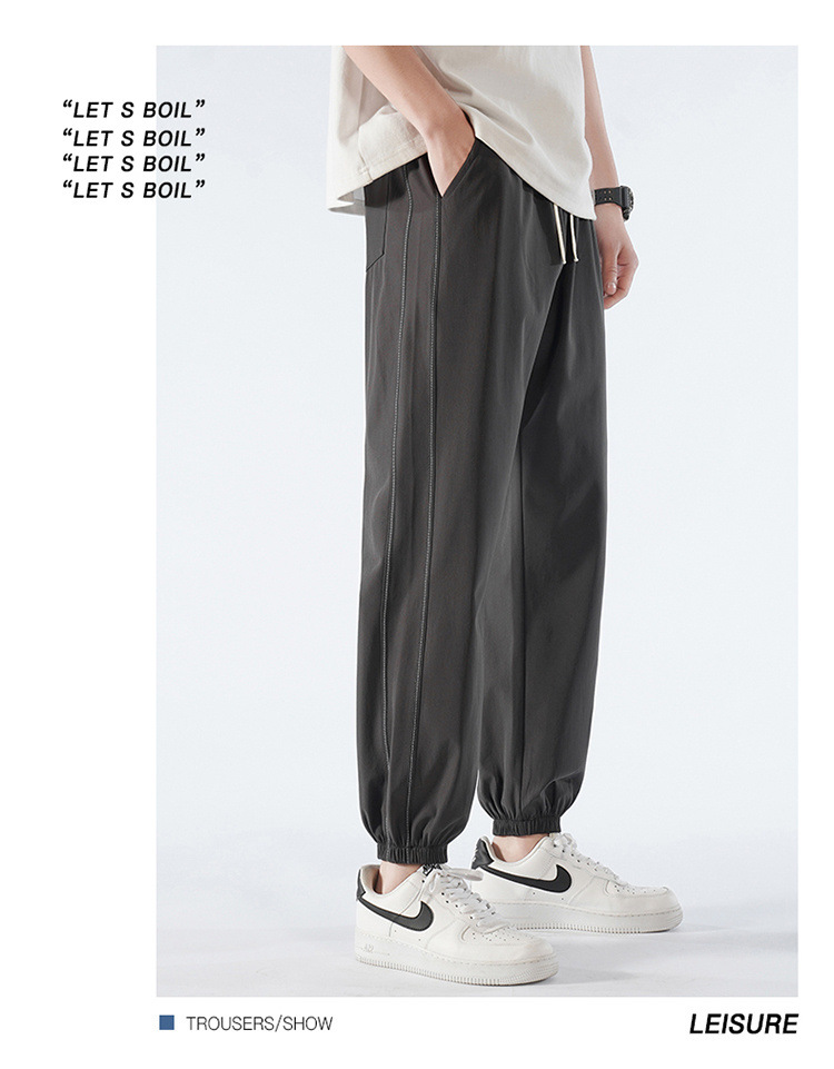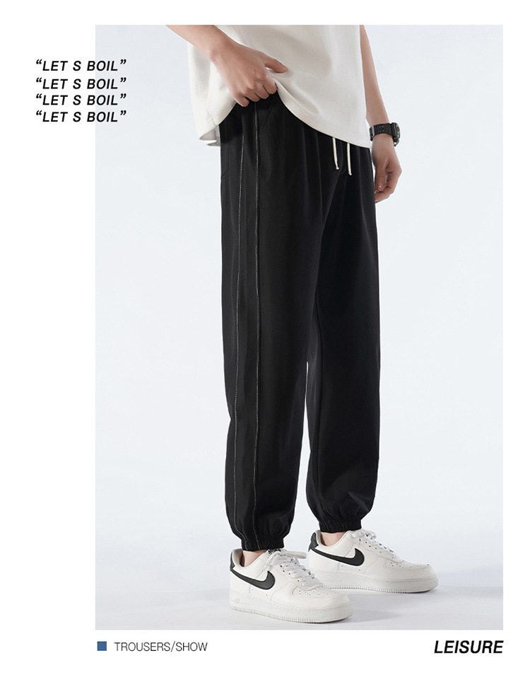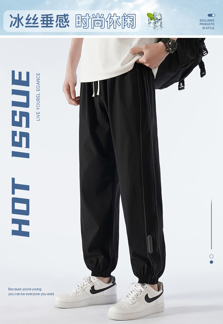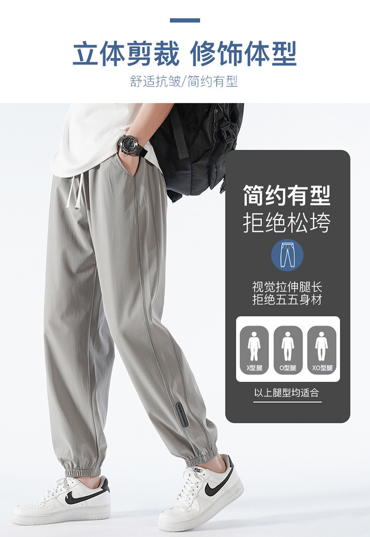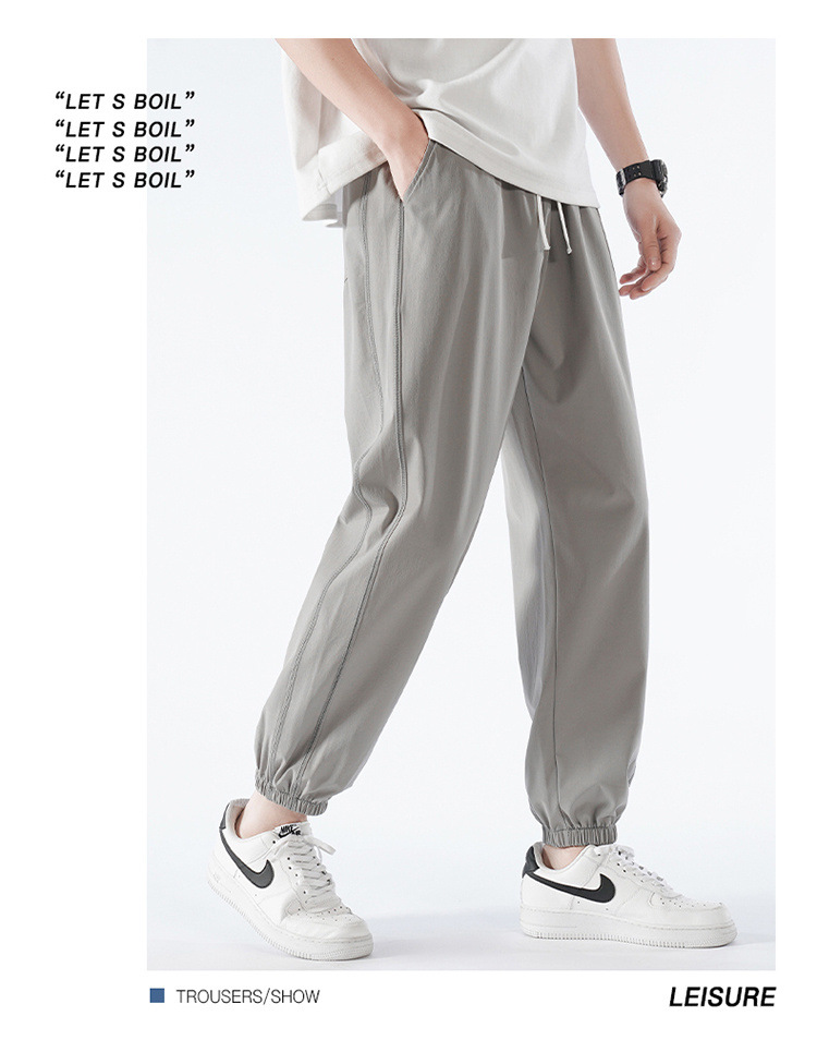 여름 아이스 실크 발목 길이 바지 남자 한국식 루즈 스포츠 얇은 빠른 건조 청소년 유행 브랜드 패션 4 면 탄성 캐주얼 바지스토어 가기