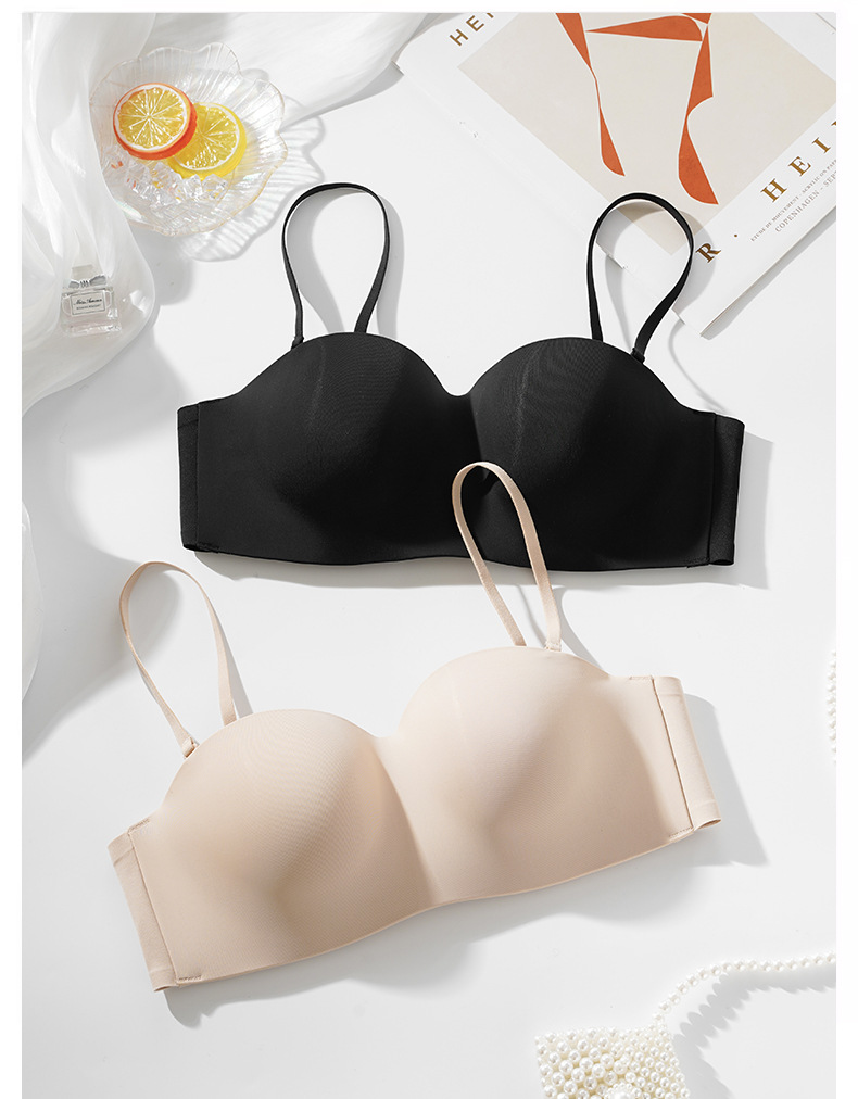도매 스트랩리스 속옷 여성 모임 작은 가슴 미끄럼 방지 랩 가슴 소프트 스틸 링 트레이스 여름 얇은 스트랩리스 브래지어