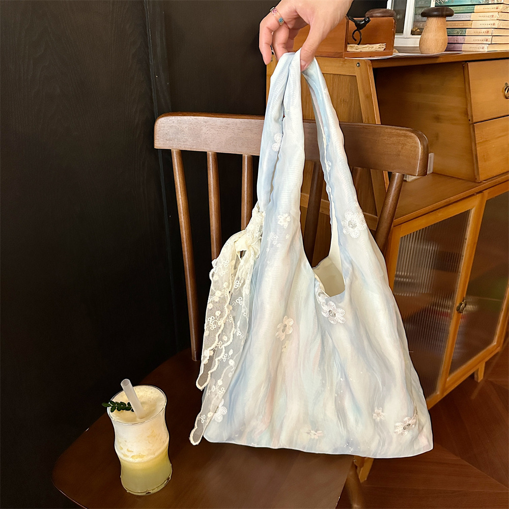 4692 Guofeng 자수 예술적 신선한 스타일 요정 캔버스 가방 어깨 핸드백 통근 대용량 바카 가방스토어 가기