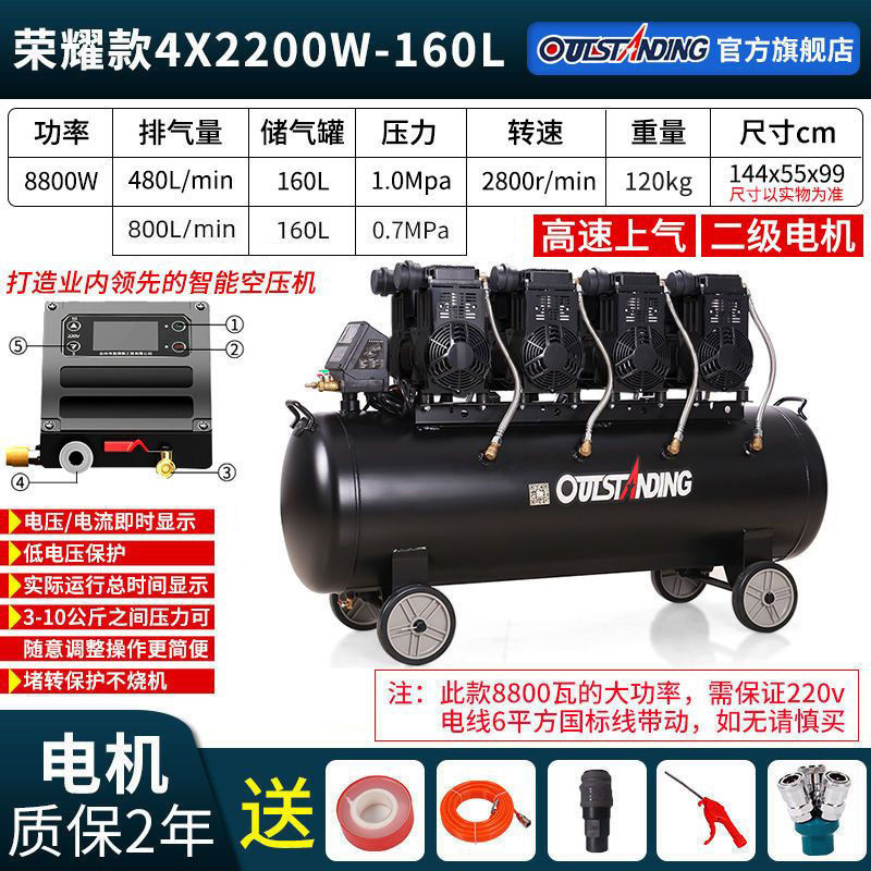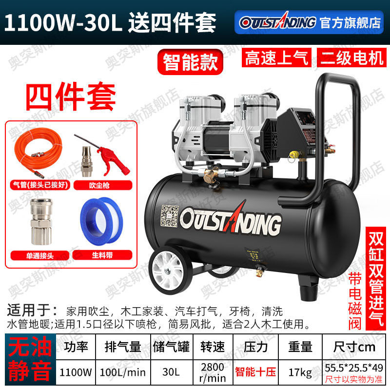 고압 Otus 공기 펌프 지능형 조정 가능한 10 압력 오일 프리 음소거 공기 압축기 목공 페인트 펌프 신제품