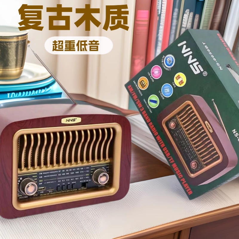 NS-6656BT 레트로 나무 홈 라디오 서브 우퍼 다기능 카드 스테레오 휴대용 블루투스 스피커스토어 가기