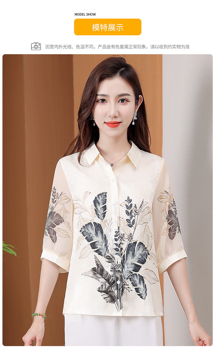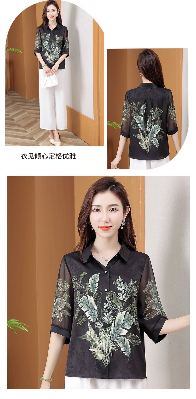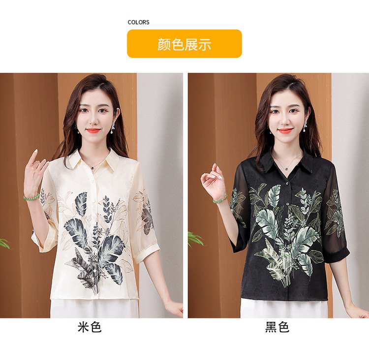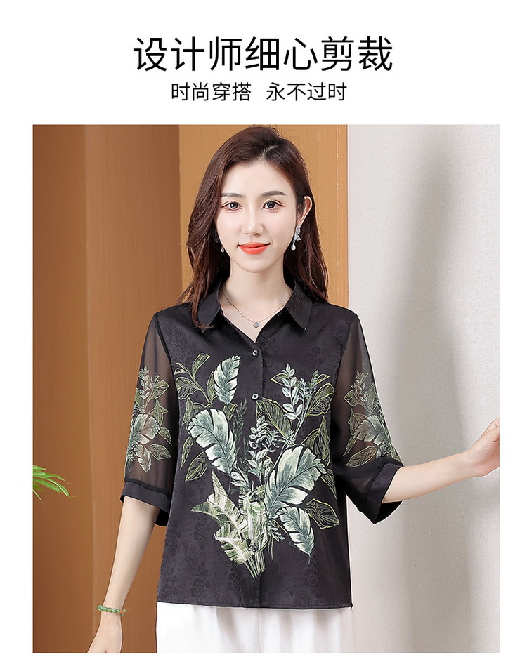 패션 셔츠 여성의 2024 여름 새로운 서양 스타일 루즈 탑 셔츠 어머니의 우아한 나이 감소 얇은 셔츠