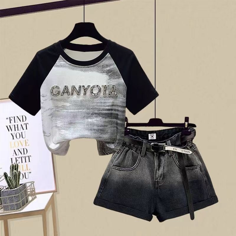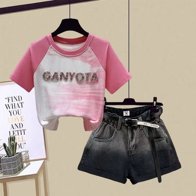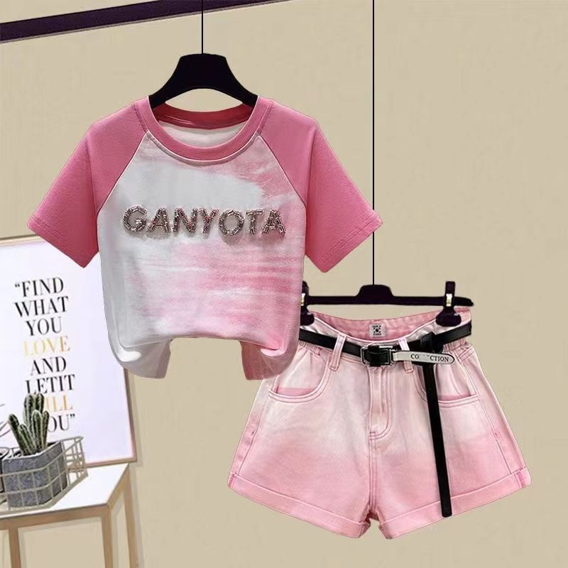 소녀 여름 원피스 세트 2024 새로운 어린이 반팔 유행 짧은 바지 중 큰 어린이 서양 스타일 여름 투피스 유행 세트