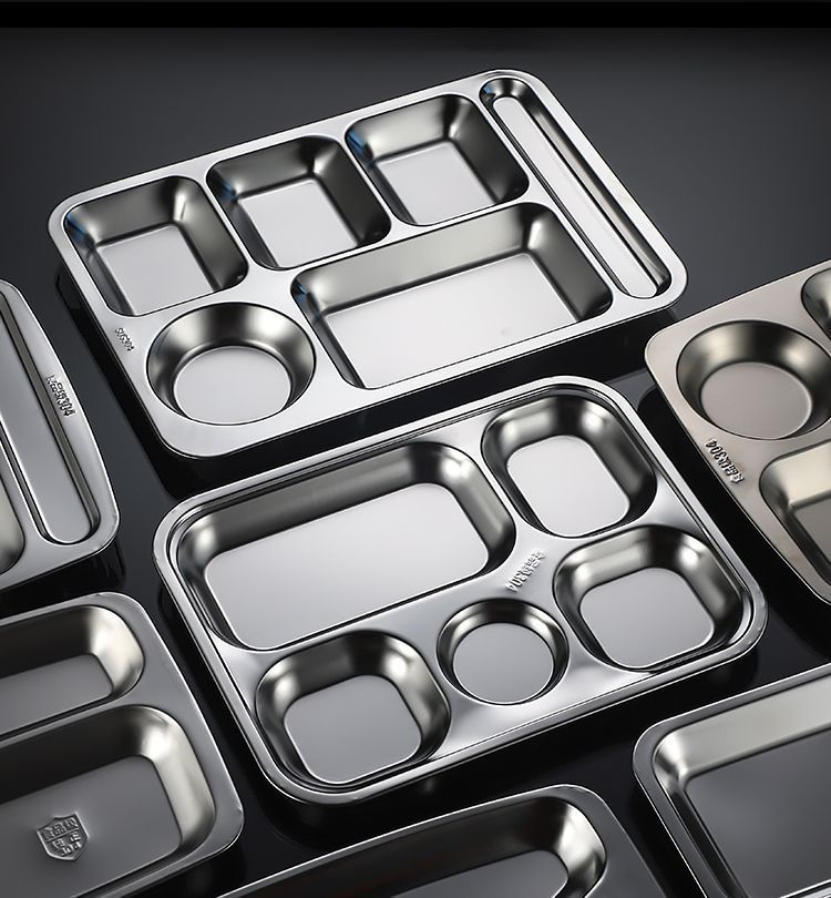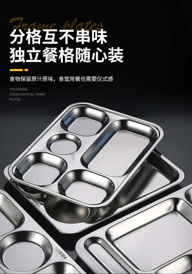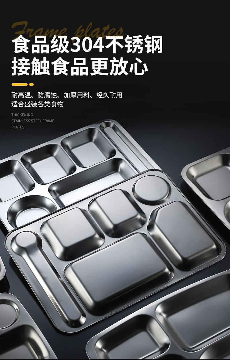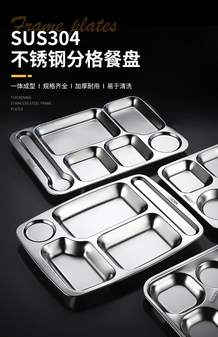 304 스테인레스 스틸 플레이트 칸막이 도시락 상자 성인 어린이 매점 광장 패스트 푸드 판 두껍게 뚜껑 도시락 상자