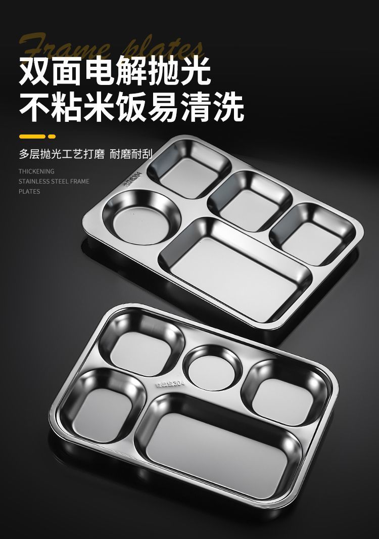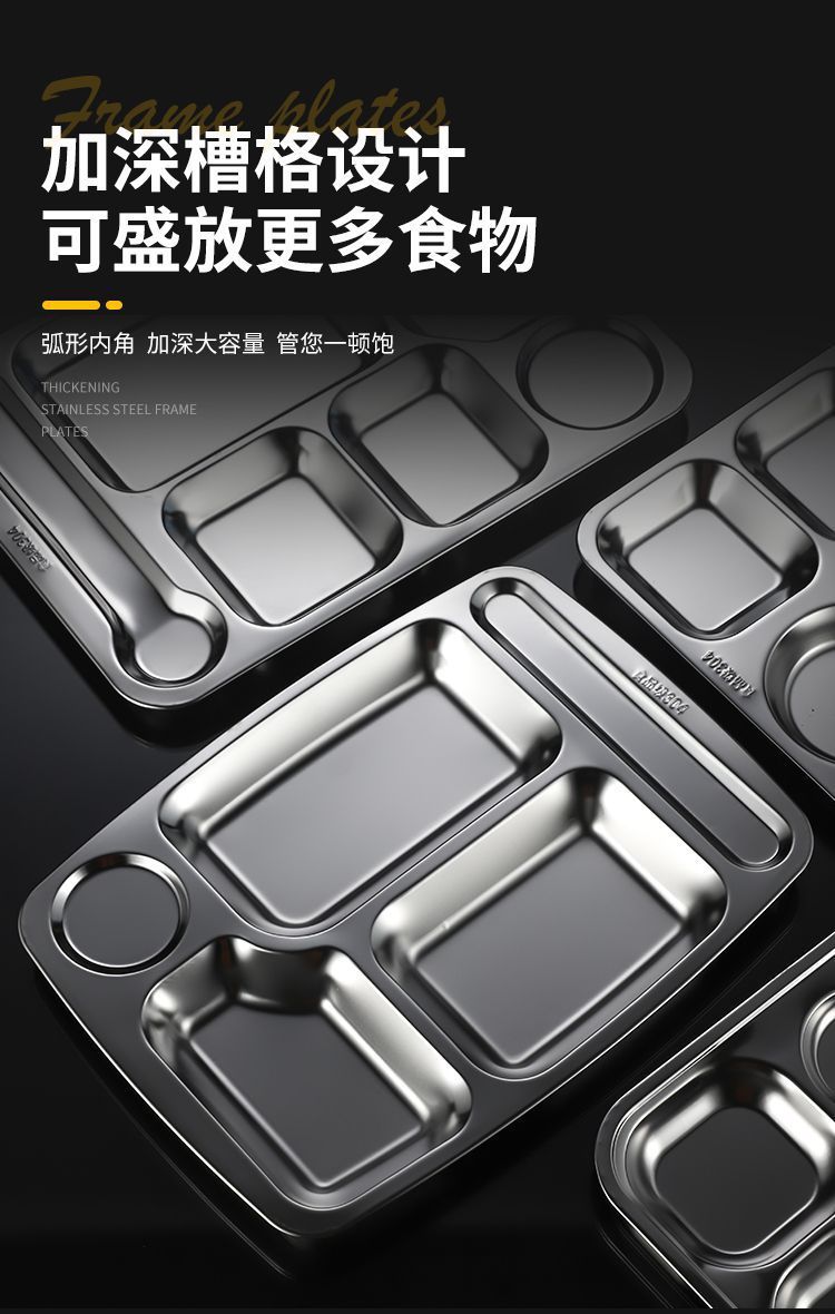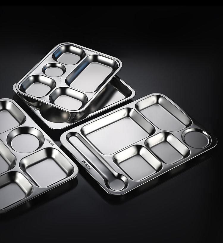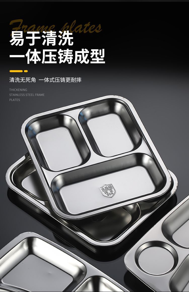 304 스테인레스 스틸 플레이트 칸막이 도시락 상자 성인 어린이 매점 광장 패스트 푸드 판 두껍게 뚜껑 도시락 상자