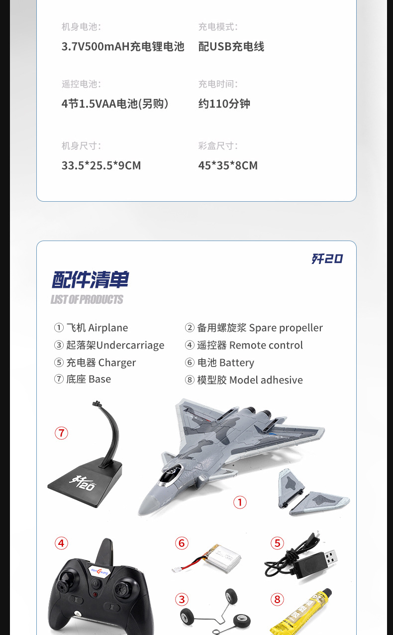 새로운 2 채널 원격 제어 전투기 J-20 폼 모델 항공기 모델 고정 날개 글라이더 어린이 장난감