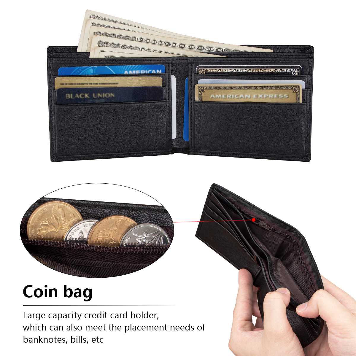 1층 소가죽 나파 가죽 남성용 지갑 멀티 카드 슬롯 신용 카드 홀더 지퍼 동전 주머니 짧은 지갑