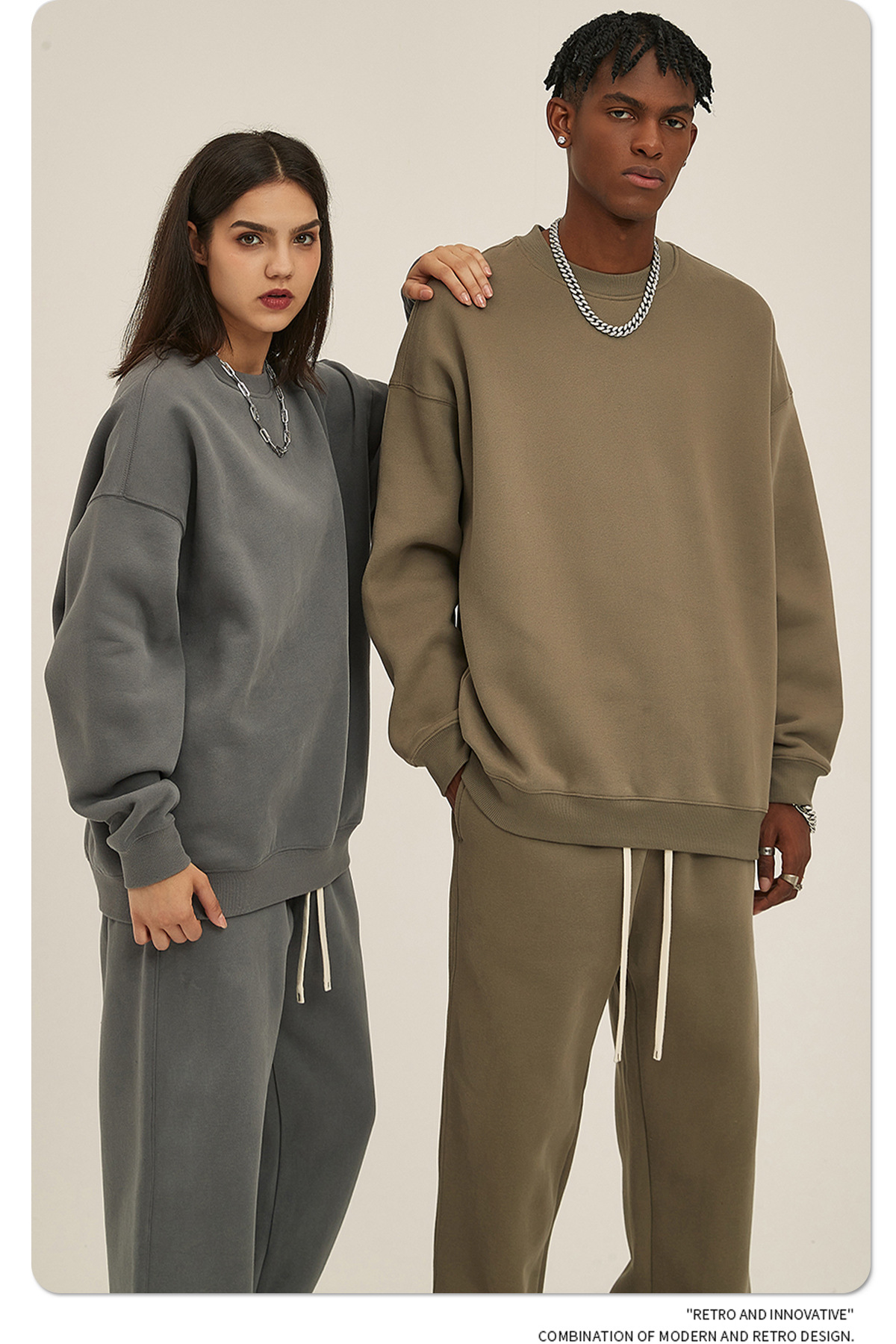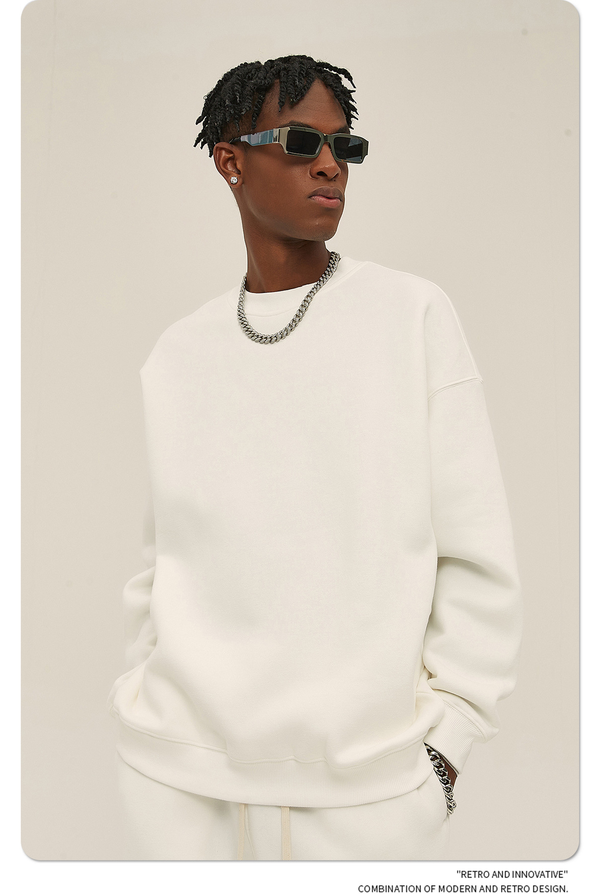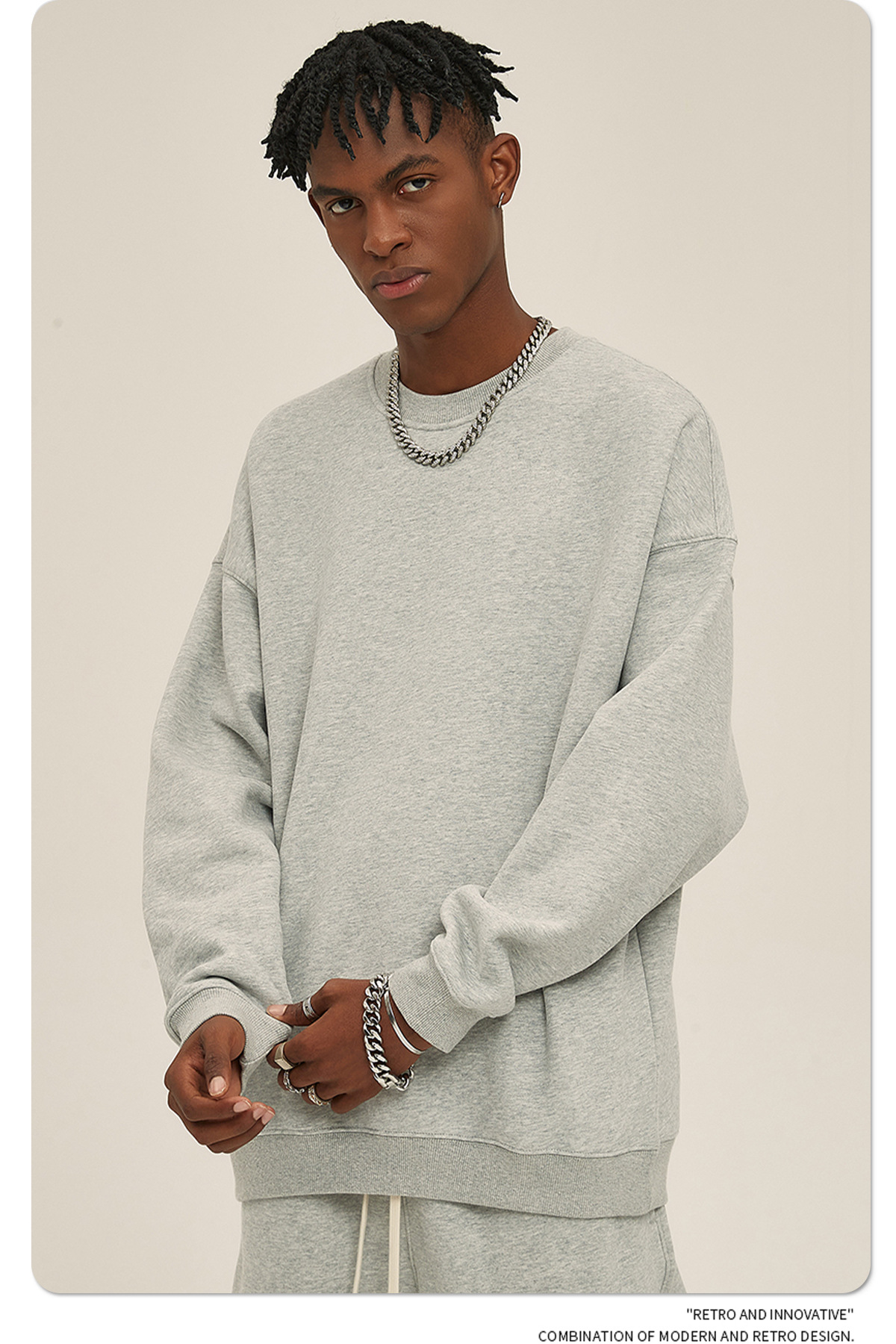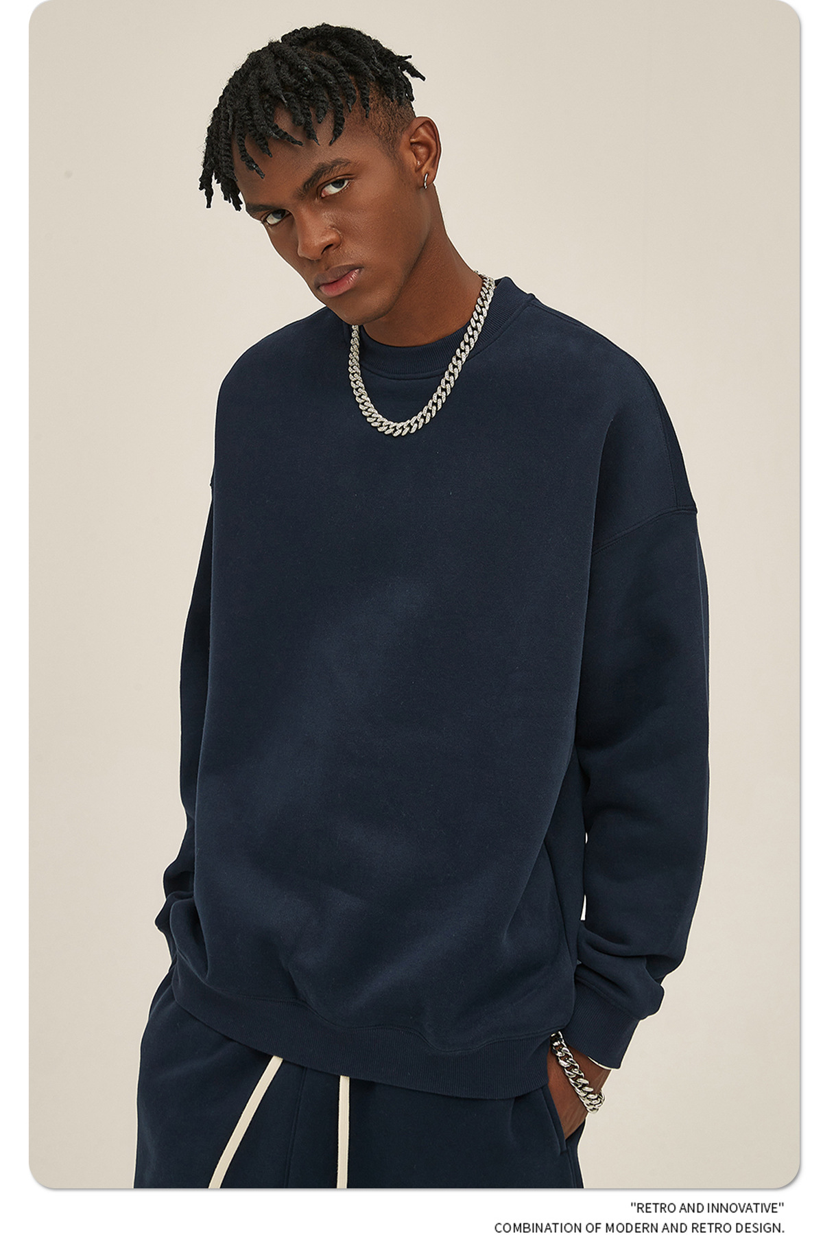 2024 가을과 겨울 새로운 350g 도파민 기모 두꺼운 승무원 목 남성 의류 거리 조수 브랜드 느슨한 승무원 목 재킷