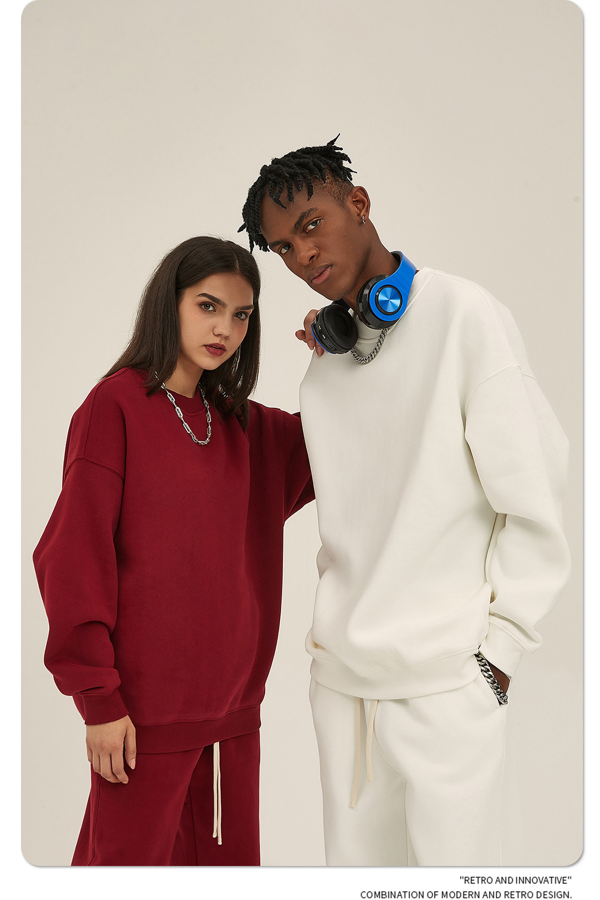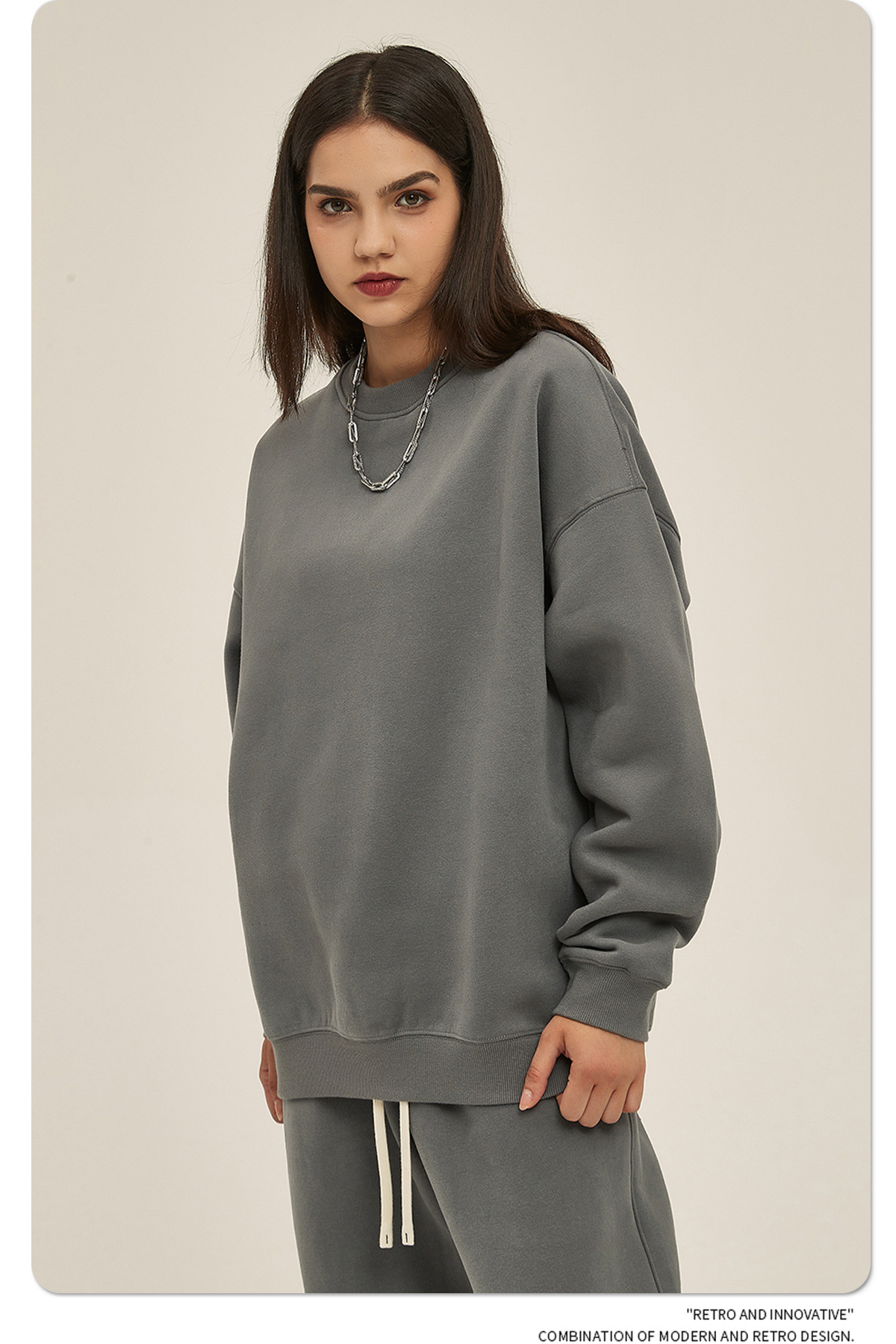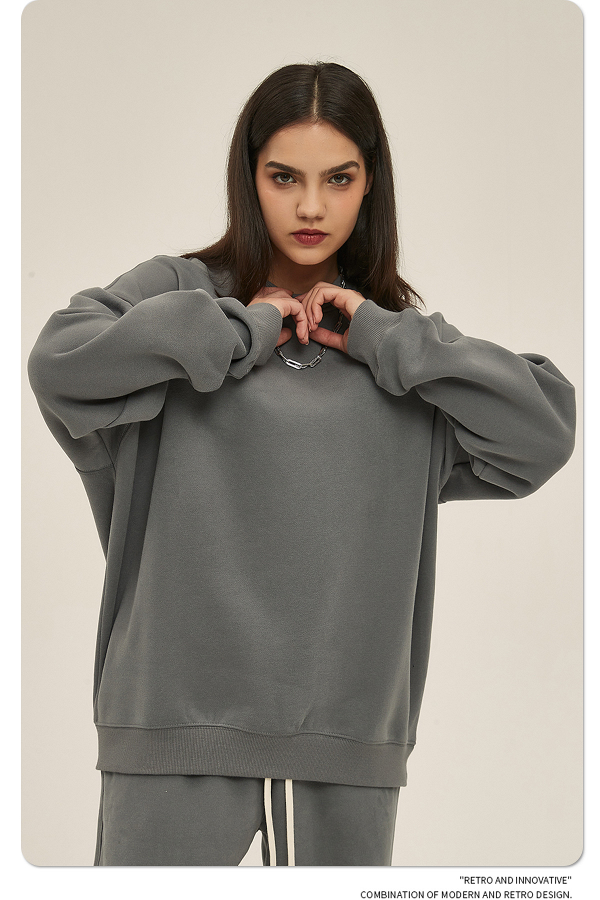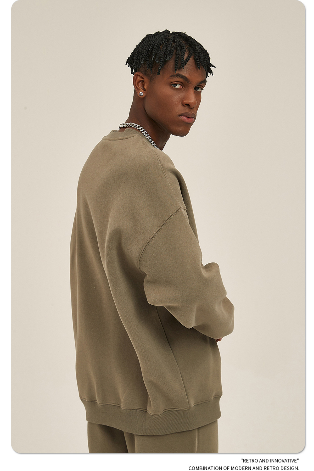2024 가을과 겨울 새로운 350g 도파민 기모 두꺼운 승무원 목 남성 의류 거리 조수 브랜드 느슨한 승무원 목 재킷