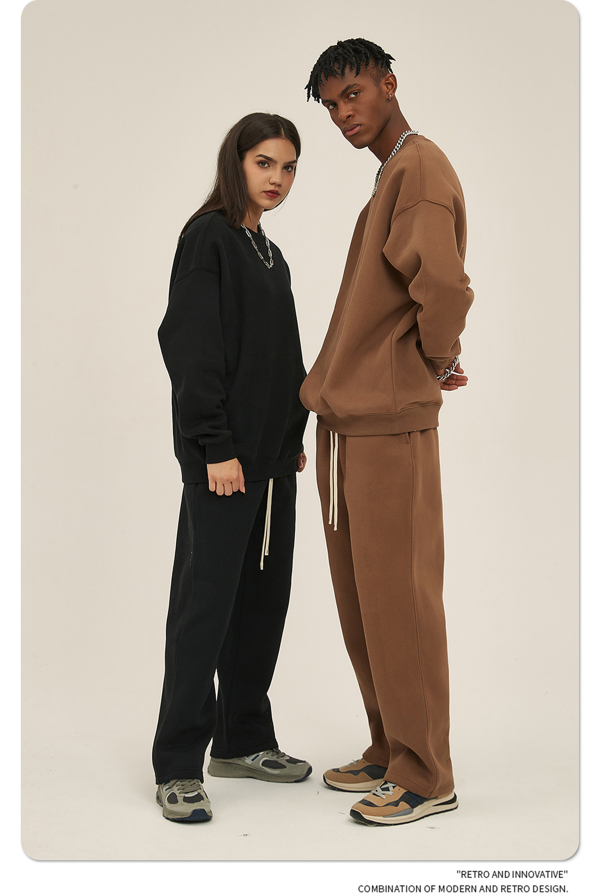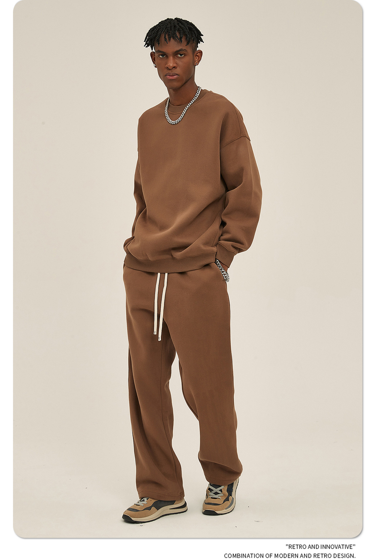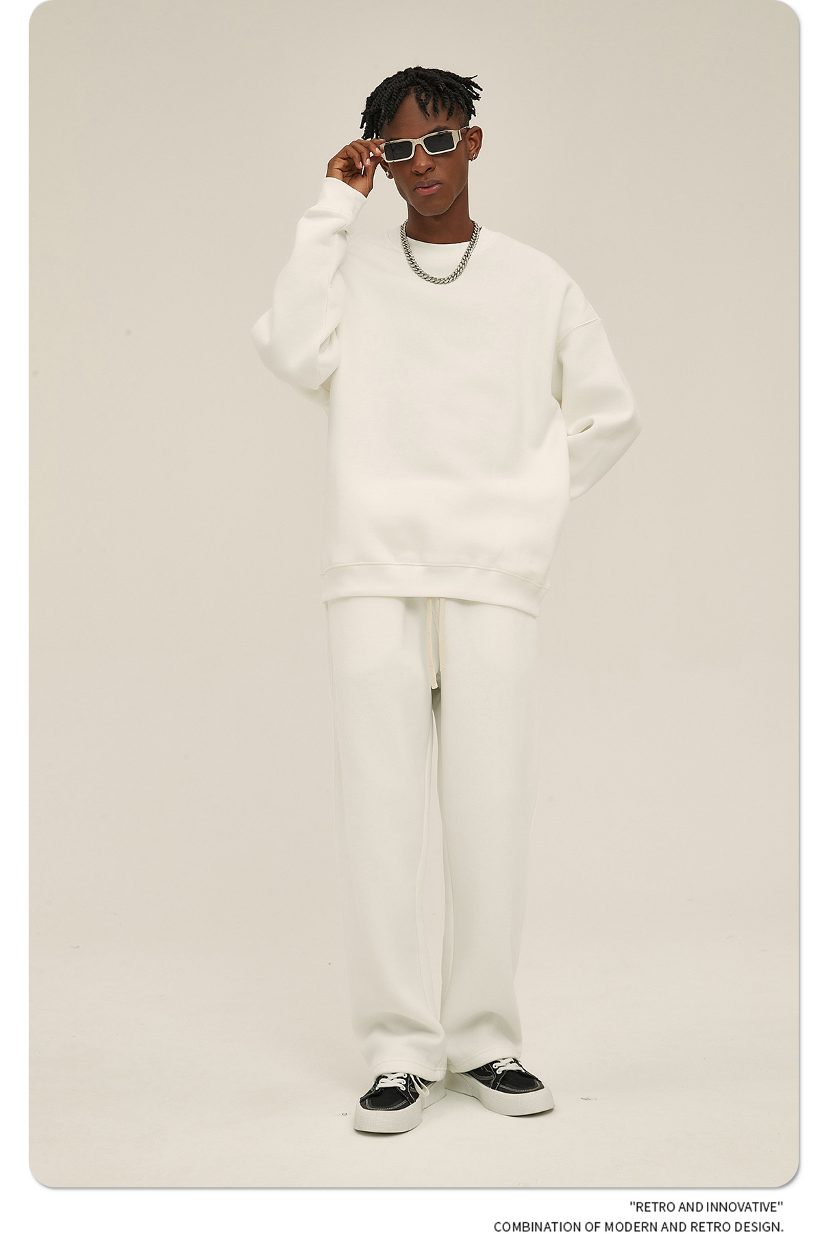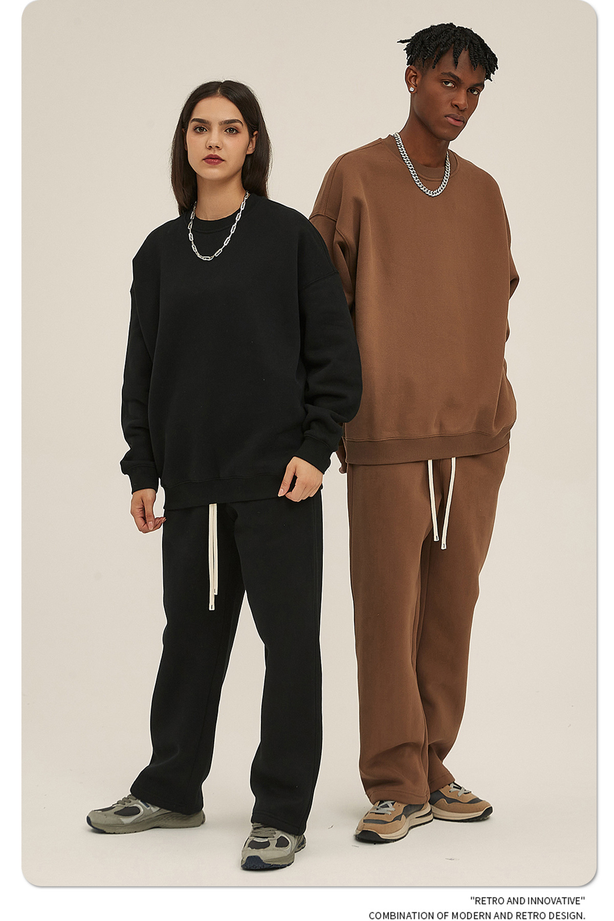 2024 가을과 겨울 새로운 350g 도파민 기모 두꺼운 승무원 목 남성 의류 거리 조수 브랜드 느슨한 승무원 목 재킷