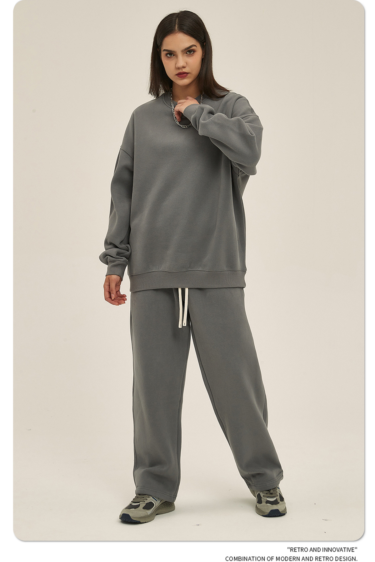 2024 가을과 겨울 새로운 350g 도파민 기모 두꺼운 승무원 목 남성 의류 거리 조수 브랜드 느슨한 승무원 목 재킷스토어 가기